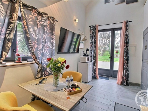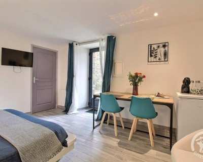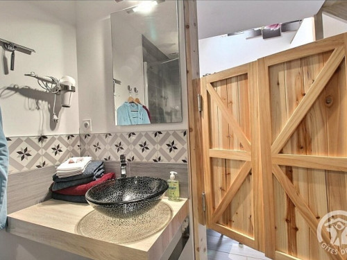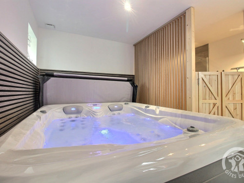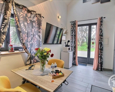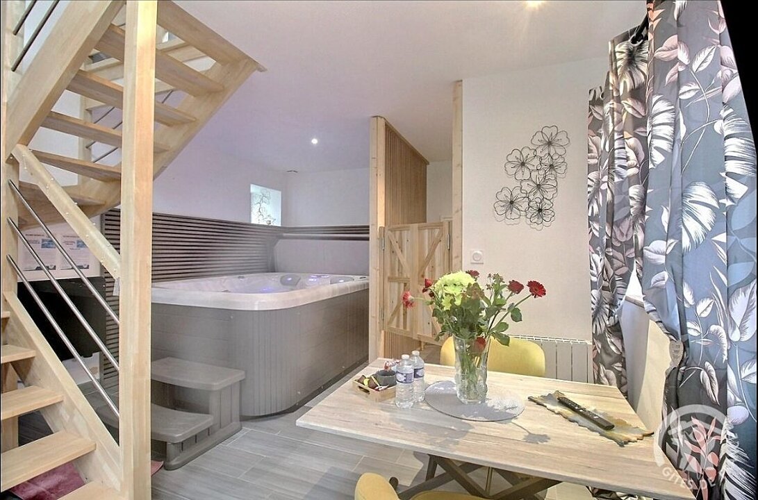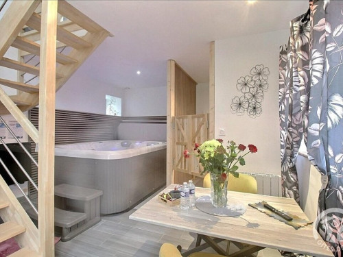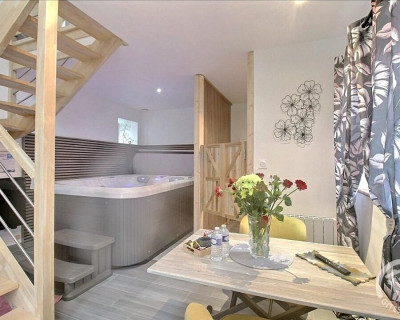 En format duplex : RDC = espace détente avec SPA, salle d'eau privative, wc privatif séparé. ETAGE : chambre (1 lit 2 pers. en 160x200) en mezzanine.