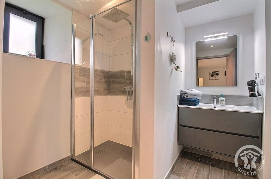 Au RDC et de plain pied : chambre (1 lit 2 pers. en 160x200) avec salle d'eau privative, wc privatif séparé.