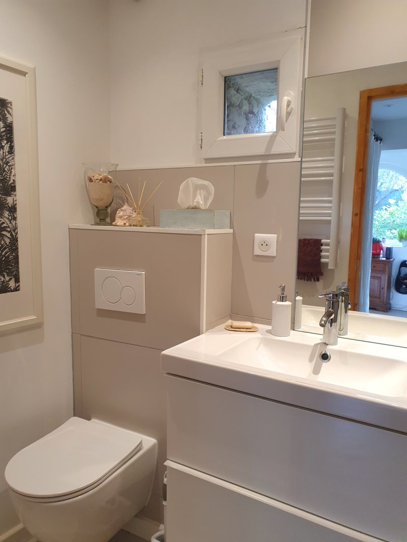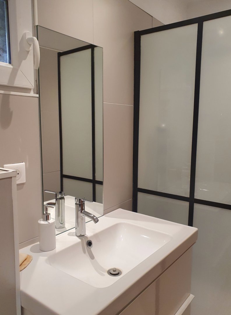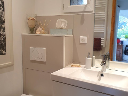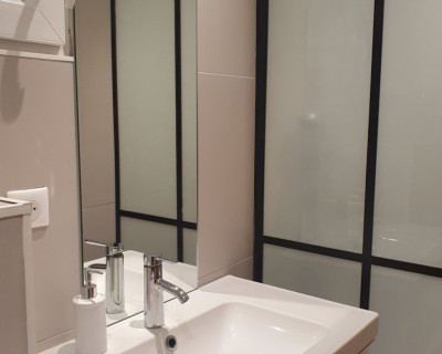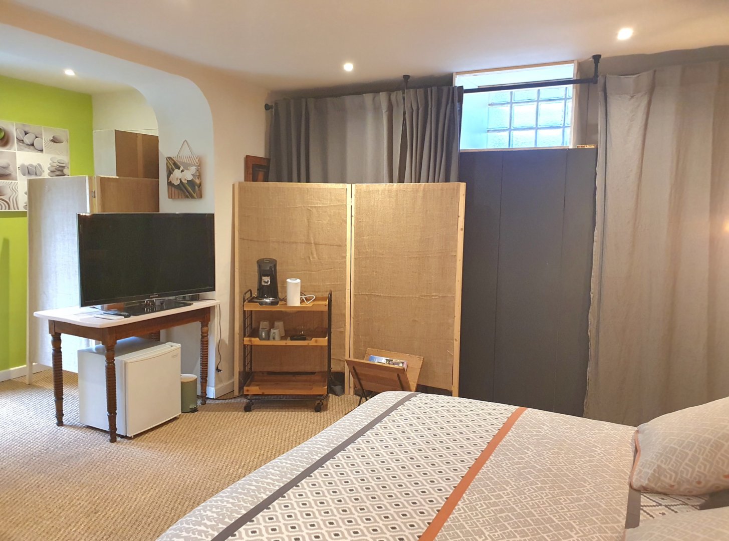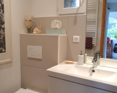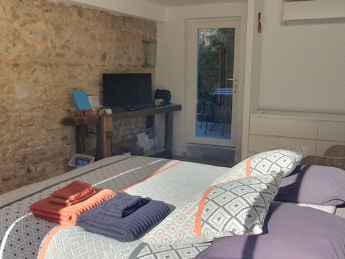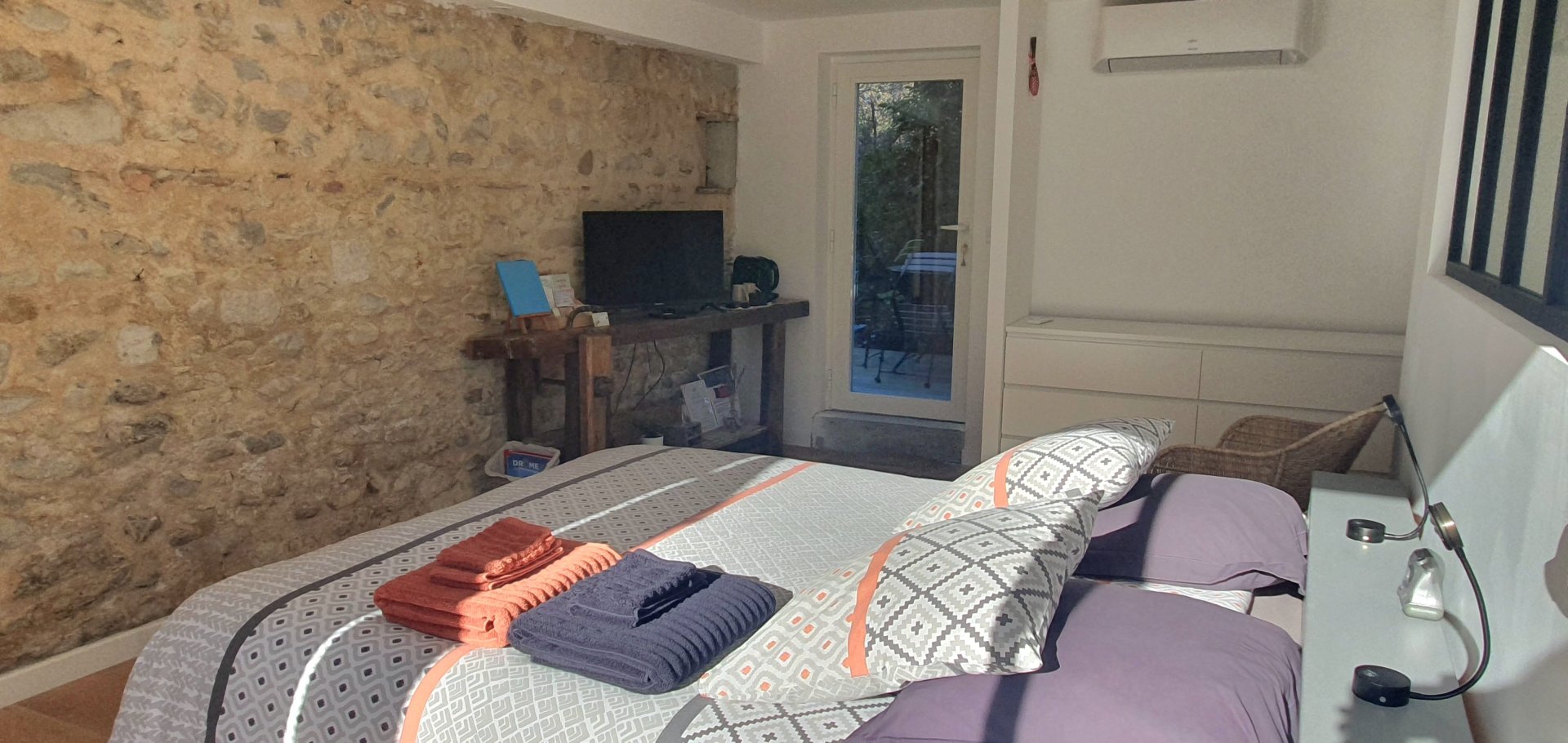 La chambre est équipée d'un WC (séparé de la salle de bain), d'une grande douche à l'italienne, une penderie, des tiroirs de rangement, un téléviseur, une climatisation réversible, un mini-frigo.