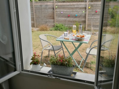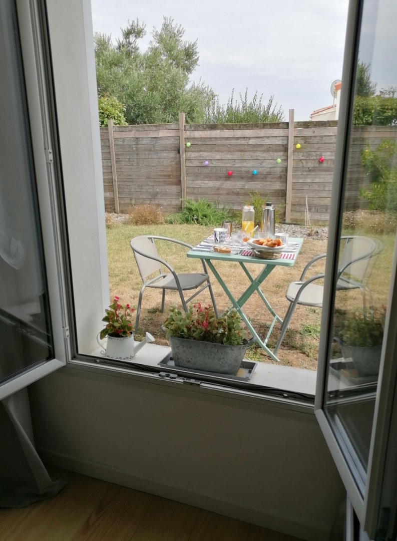 Une large porte-fenêtre s'ouvre sur votre terrasse et le jardin