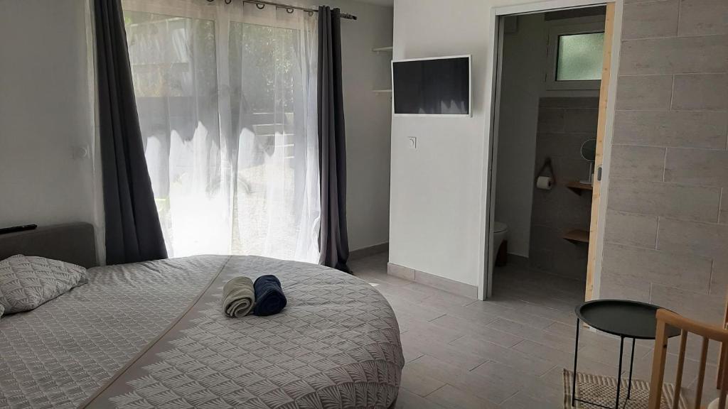 Dotée d'une entrée privée et d'une terrasse offrant une vue sur le jardin, cette chambre double insonorisée dispose d'une salle de bains privative pourvue d’une douche. Ce logement comporte un lit.