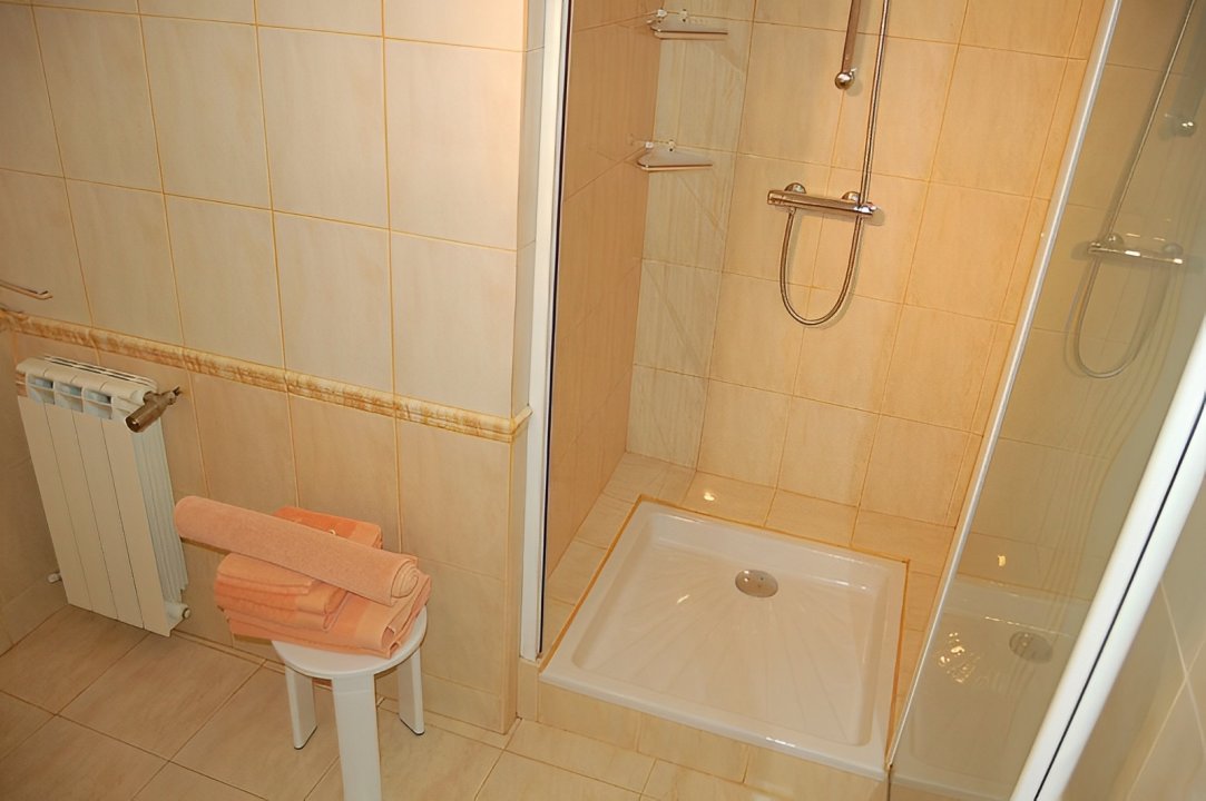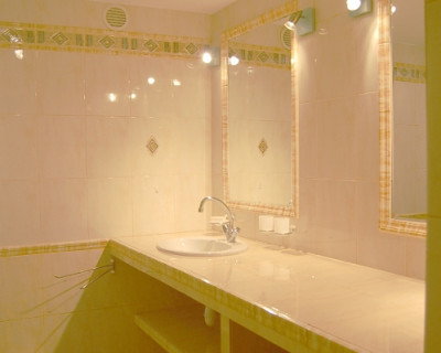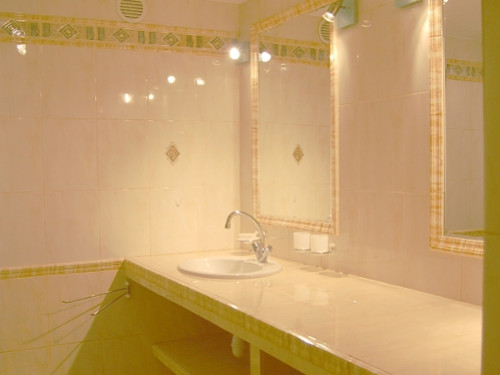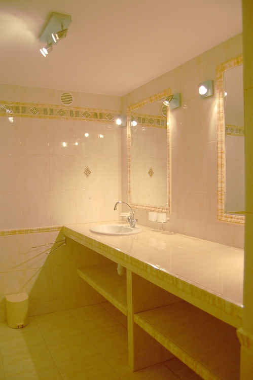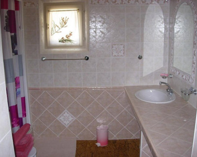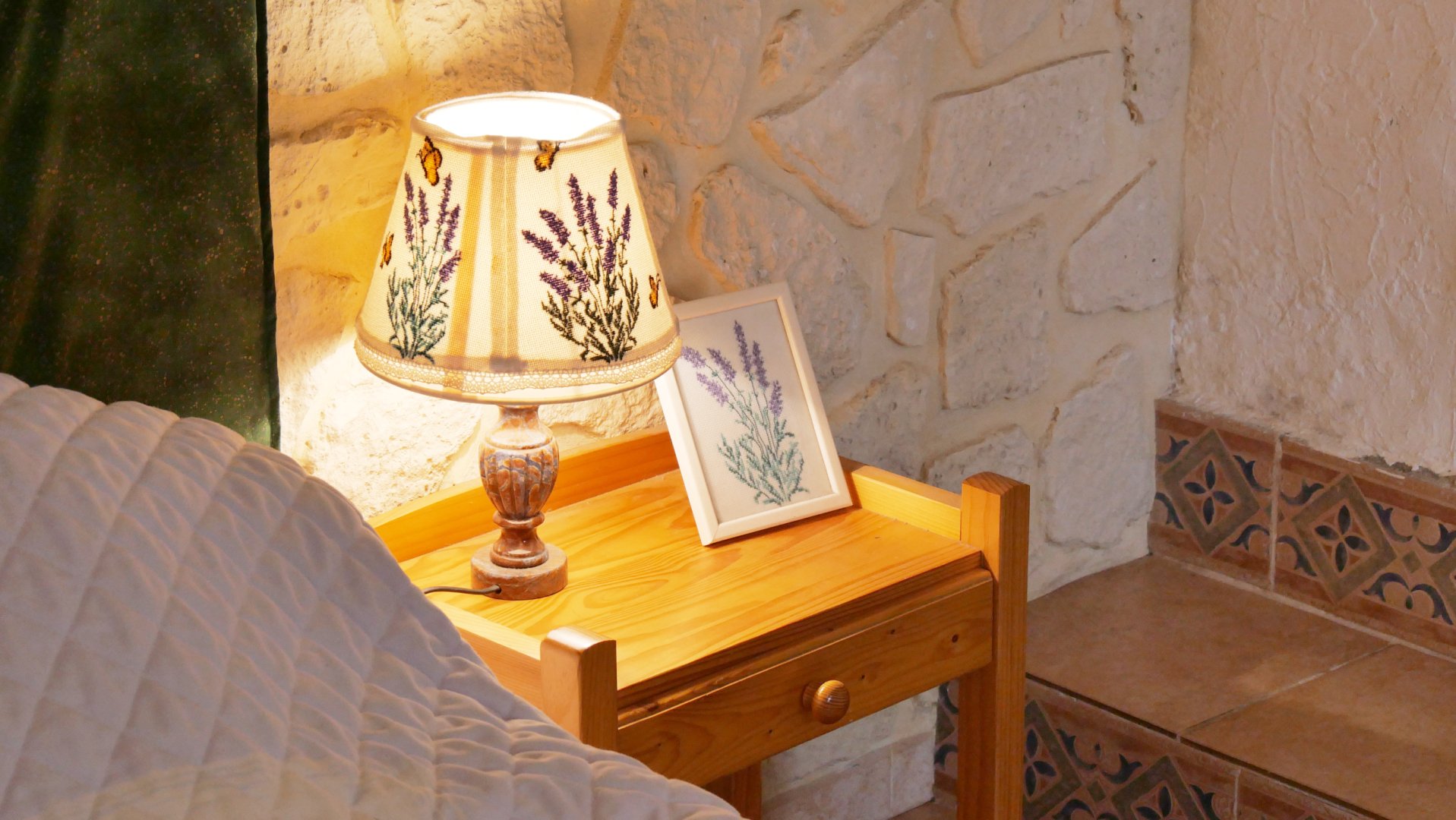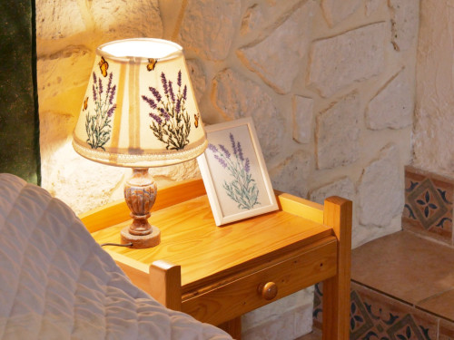 La chambre est décorée avec soin jusqu'au papier wc couleur mimosa. Charmant tout simplement.