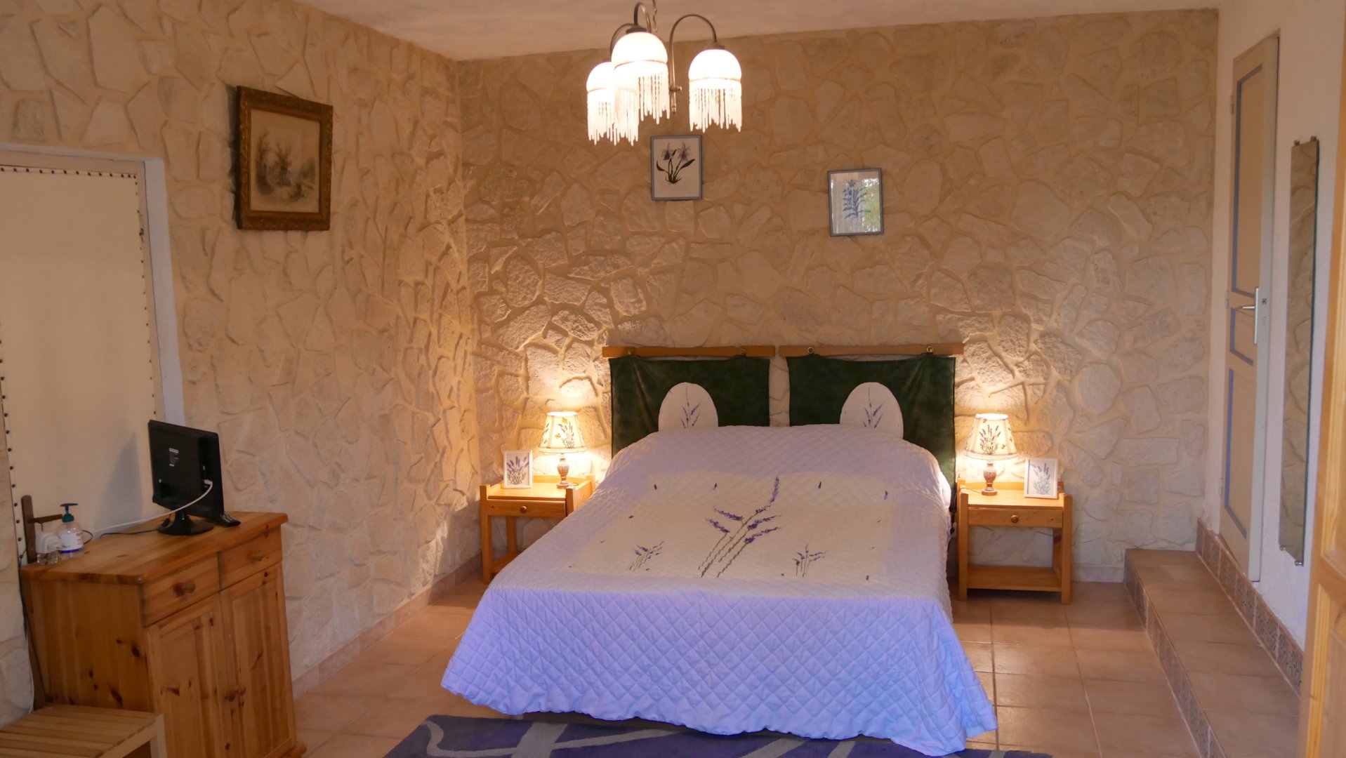 Son entrée donne sur la terrasse, en façade. Cette chambre a été totalement remise à neuf.