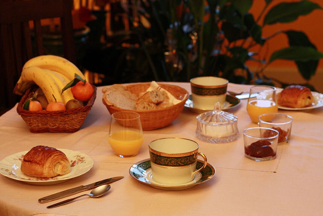 Le petit déjeuner, compris dans le tarif, est servi dans la salle à manger.