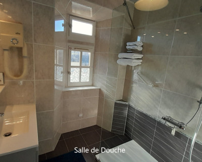 ( Petit déjeuner inclus ) Suite à la décoration campagne-chic = entrée avec kitchenette équipée, salon avec TV , table avec 2 fauteuils , 1ère salle de bain avec douche à l'italienne , chambre avec grand lit king size, placard, toilettes séparées, 2ème salle de bain avec baignoire balnéo. Possibilité de louer la suite en gîte à la semaine sans le petit déjeuner. Capacité : 2 personnes maximum