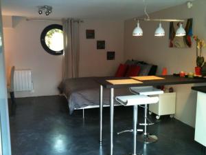 Le studio indépendant possède un jardin privé et une terrasse. Il comprend une kitchenette équipée, un coin salon et un espace chambre séparé.