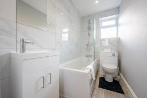 The spacious guest house features 4 bedrooms, a TV with streaming services, a fully equipped kitchen with an oven and a microwave, a washing machine, and 2 bathrooms with a bath. Towels and bed linen are featured in the guest house. The property has an outdoor dining area.