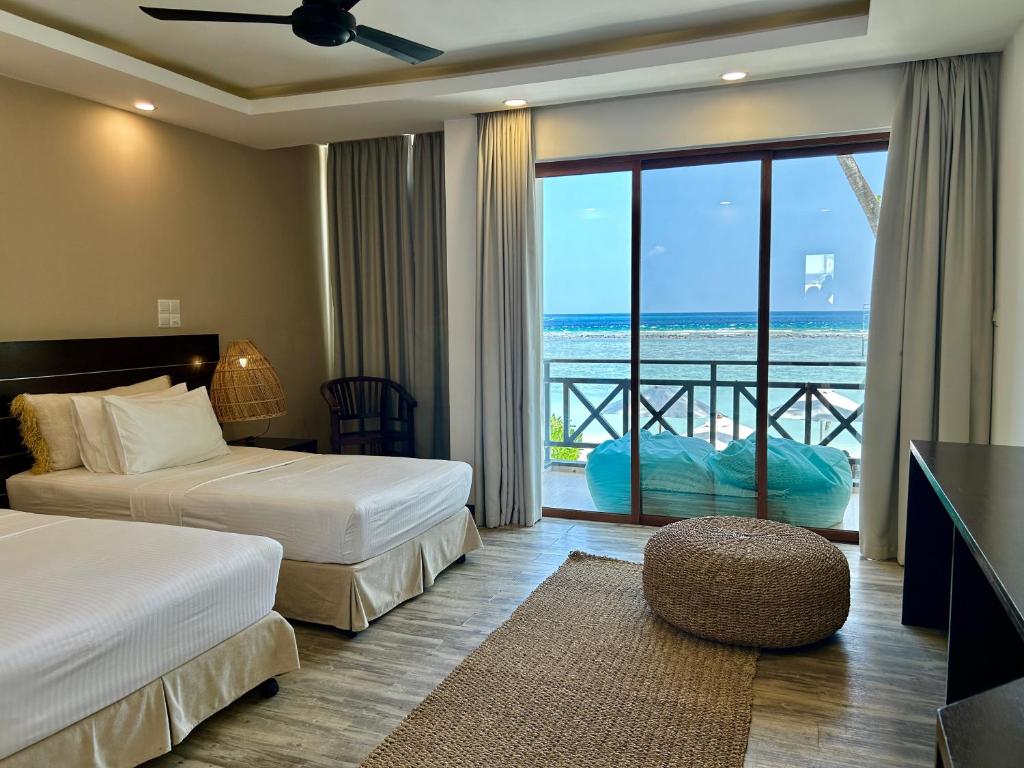 Located in Thulusdhoo, Canopus Retreat Thulusdhoo offers beachfront accommodation 100 metres from Bikini Beach and provides various facilities, such as a private beach area, a garden and a bar. The air-conditioned accommodation is 2.9 km from Gasfinolhu Beach. The guest house features family rooms.