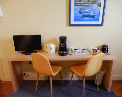 Profitez soit d'une chambre avec deux lits accolés et/ou d'une chambre avec un lit King Size avec vue, téléviseur plat.