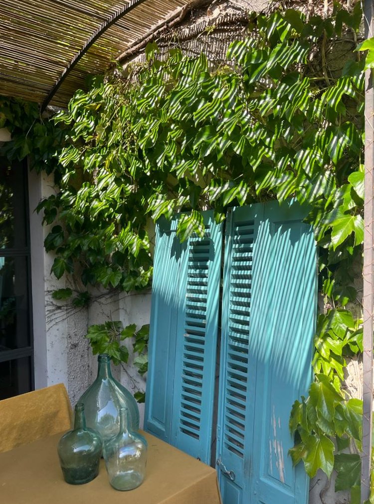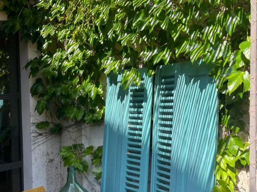 Une belle vue depuis la fenêtre donne sur le jardin paysagé, ainsi que sur les vignes au loin.