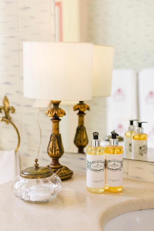 The private bathroom includes a bath and free toiletries.
