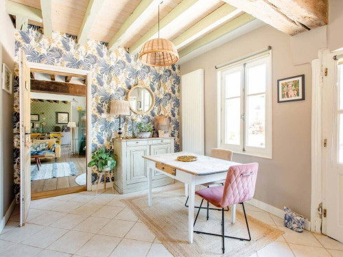 Le tout situé à étage. Une longère Bressane authentique avec dépendance fermée pour stationner vélos et motos. La maison est entourée d'un grand jardin aménagé, une pergola couverte avec table pour y prendre le petit déjeuner. Longère située au centre du bourg a proximité un étang et une baignade biologique naturelle ouverte en Juillet et Août. Une boulangerie et agence postale. Seul les chiens de petite taille sont accepté.