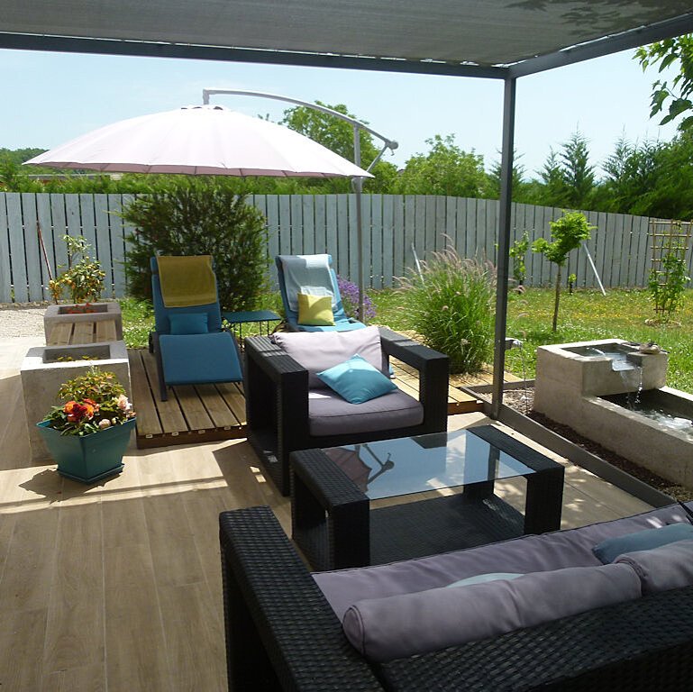 Les espaces communs sont la petite piscine intérieure chauffée par le soleil , la grande terrasse ombragée avec transats, et la totalité du jardin.