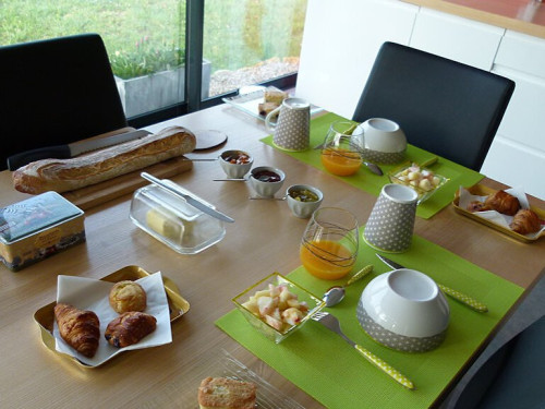 We offer on request a table d'hôtes including 2 options (full meal €30/p. or garnished platters €26/p.) No possibility of cooking.
