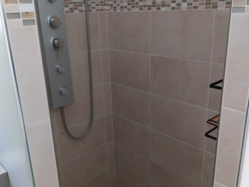 Cuisine d'été avec plancha, frigidaire américain, lave vaisselle, plaque de cuisson, micro-ondes etc.
