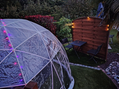 Vous profitez du SPA privatif (deux places allongées) sous une bulle vous permettant d'en profiter par tout les temps de jour comme de nuit.