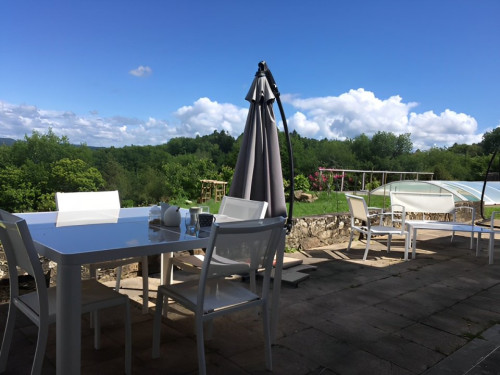 Un moment de détente ou une halte sur la route de vos vacances : chambre d'hôtes dans une maison de caractère avec piscine avec vue sur la vallée.