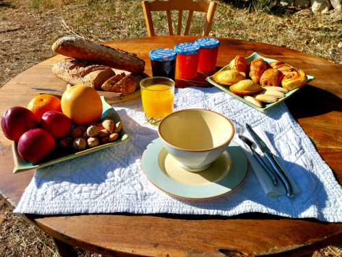 Notre chambre d'hôtes, le cabanon de LiLi, est un cabanon typiquement provençal avec ses volets bleus et entièrement rénové en 2023 pour lequel vous avez un accès totalement indépendant à quelques pas de la maison principale où nous vous attendons pour le petit déjeuner continental.