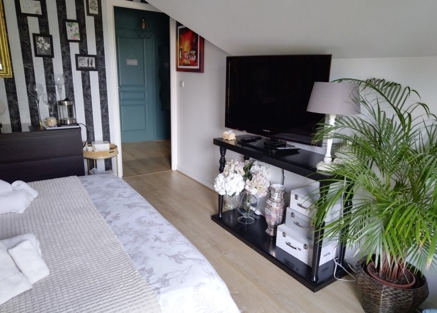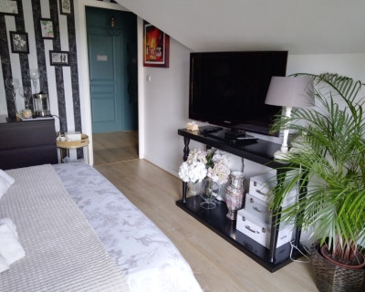 Nous vous proposons une chambre claire et spacieuse de 14 m² avec salle de bains privative avec douche italienne et WC séparés.