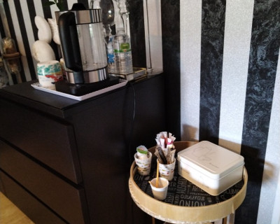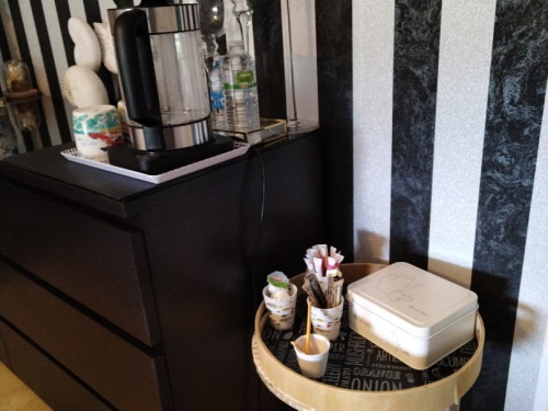 Bouilloire électrique avec thé, tisane, café dans la chambre