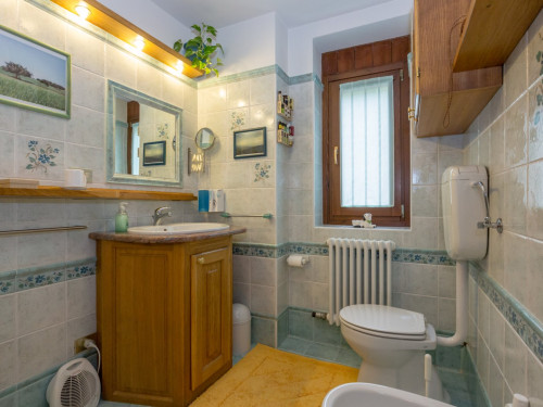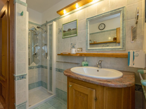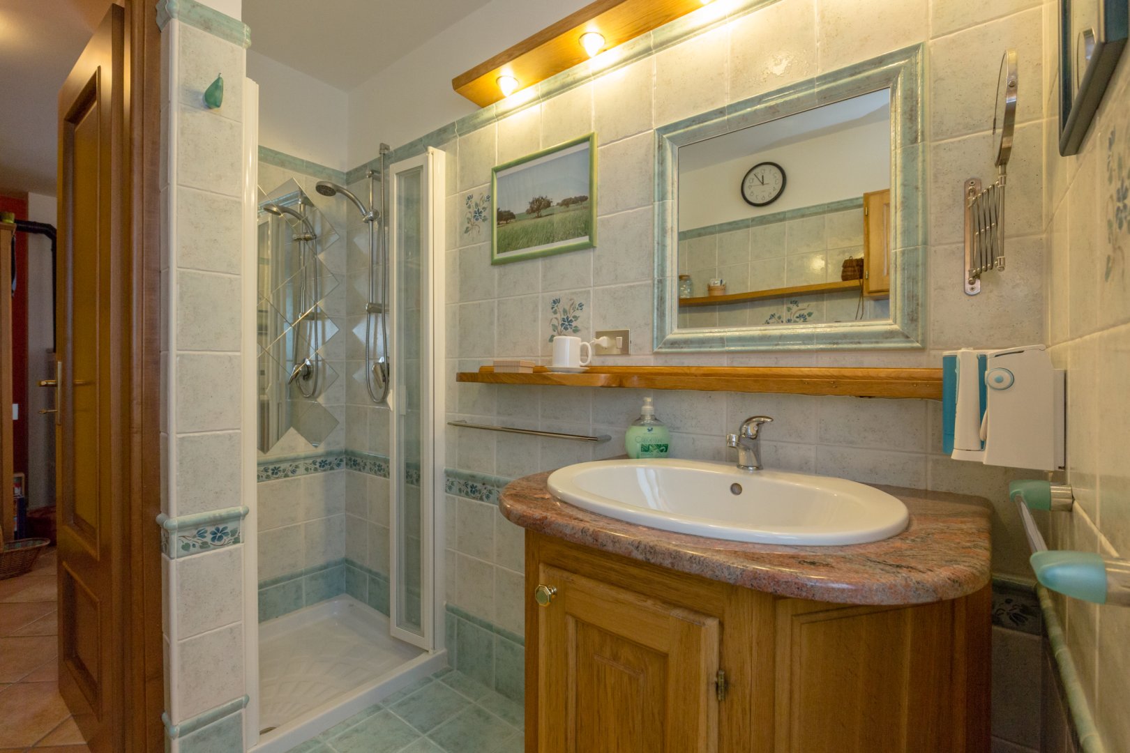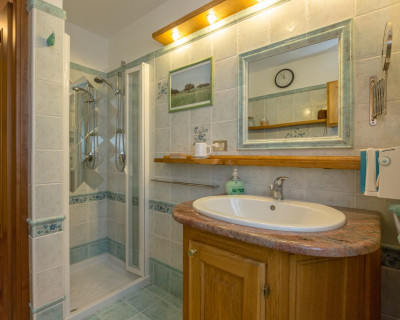 La salle de bain est adjacente à la chambre privée donnant sur le jardin.