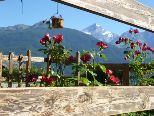 Il y a un magnifique panorama sur les montagnes du Parc National du Grand-Paradis.
