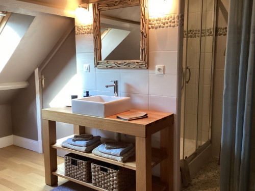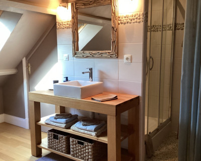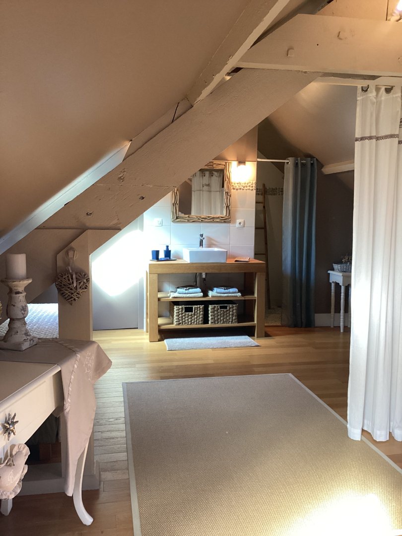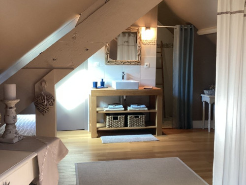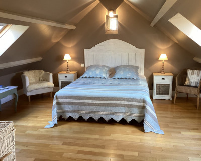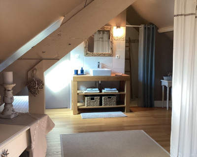 La chambre d'hôtes se compose d'un grand lit 2 personnes(160x200) avec salle de bain et WC privés.