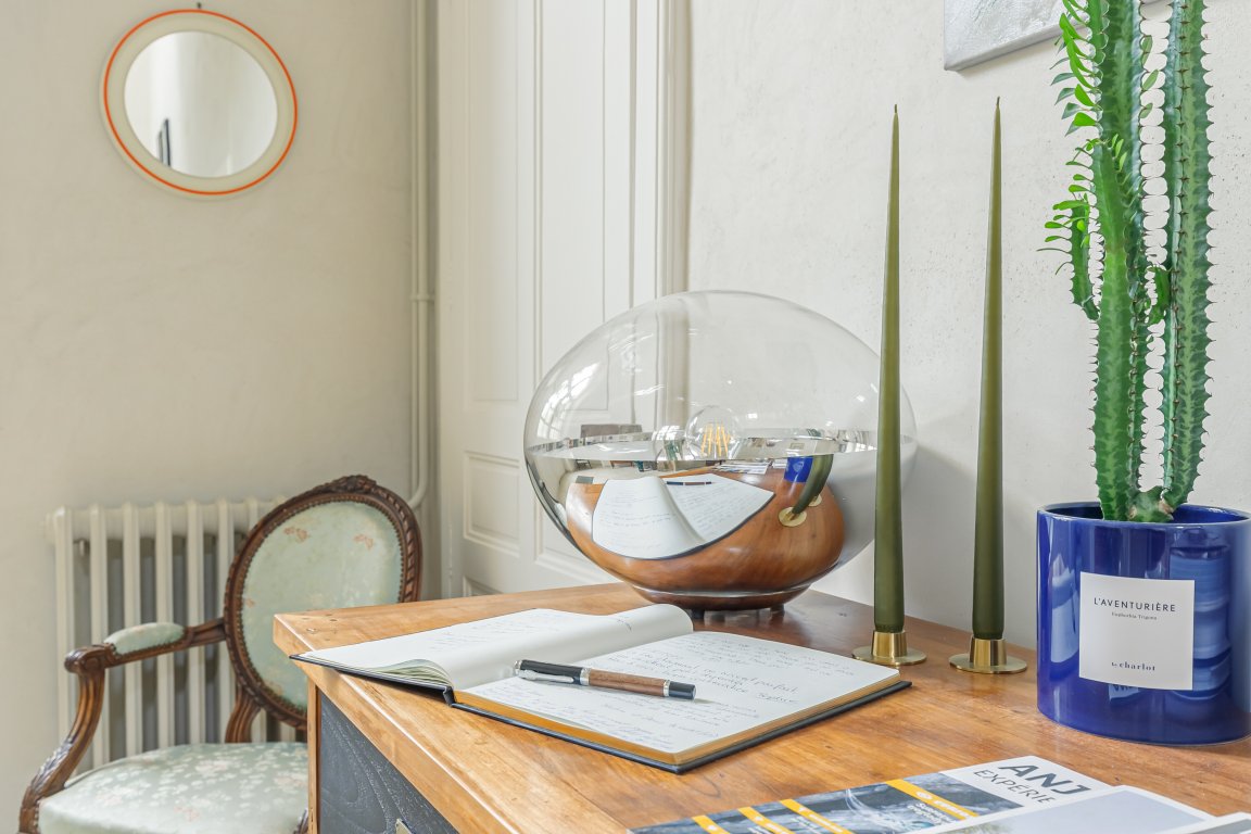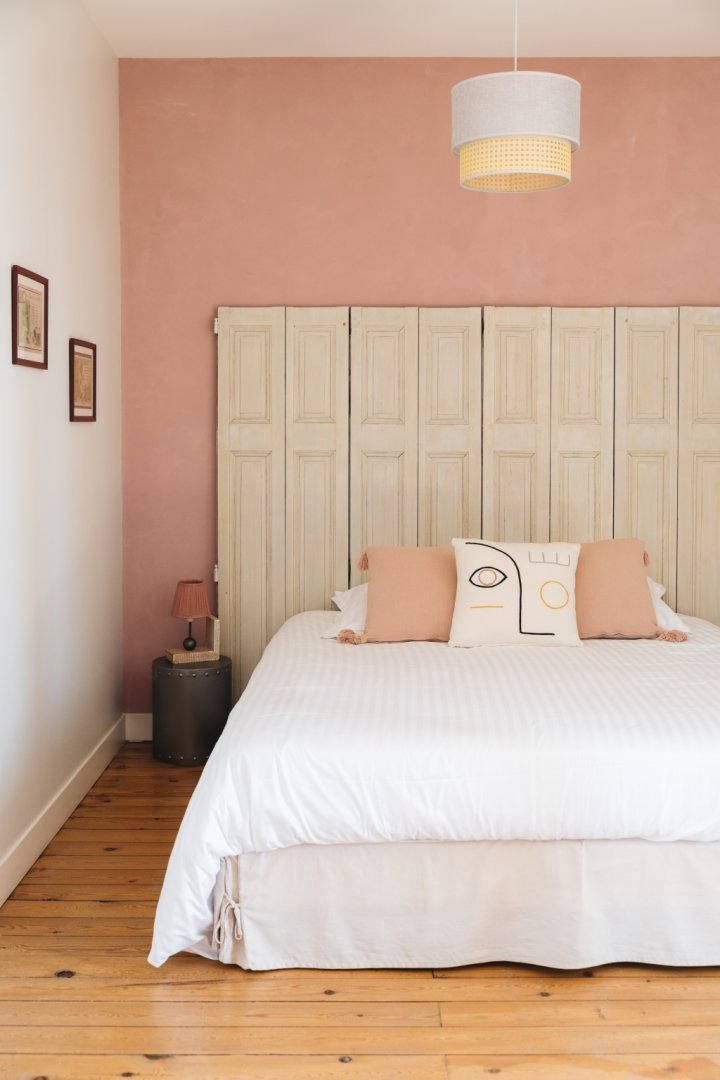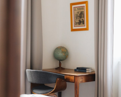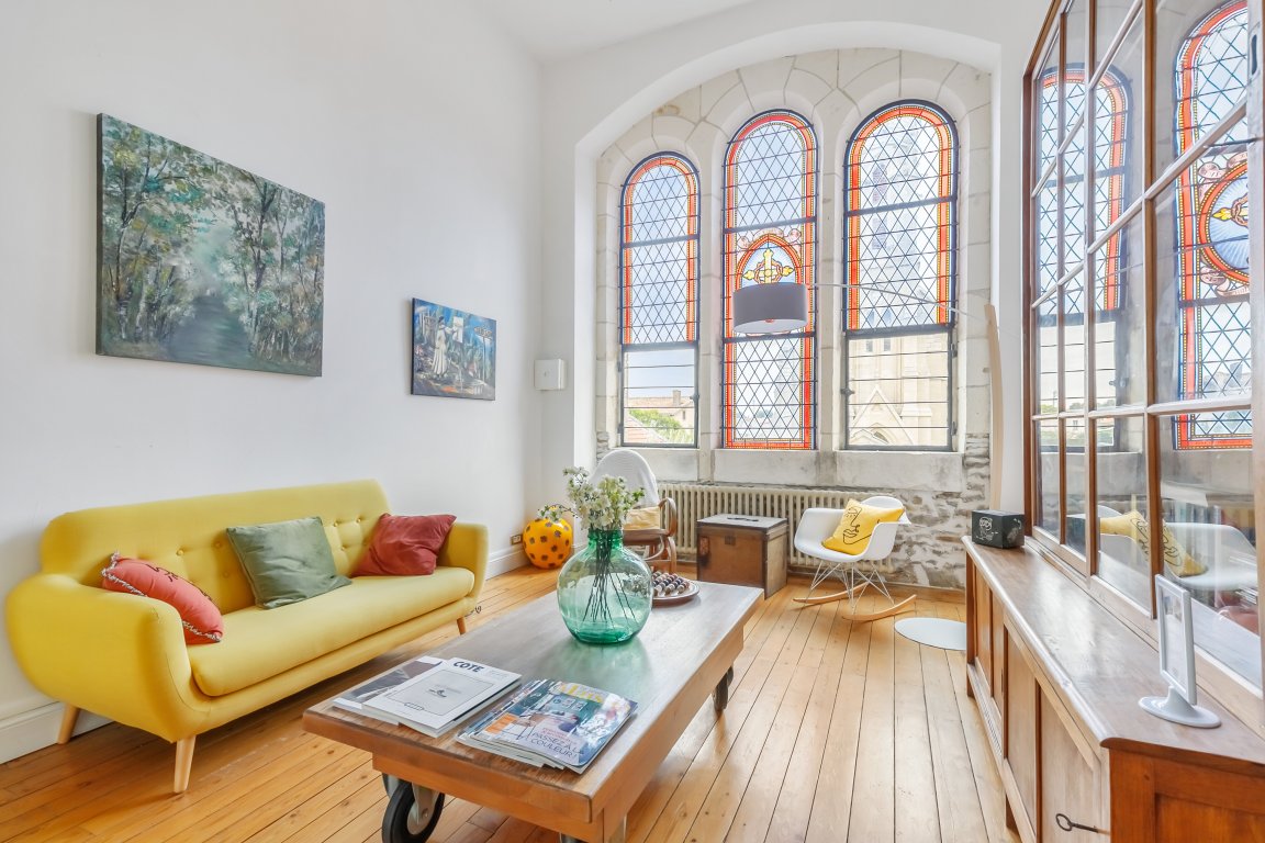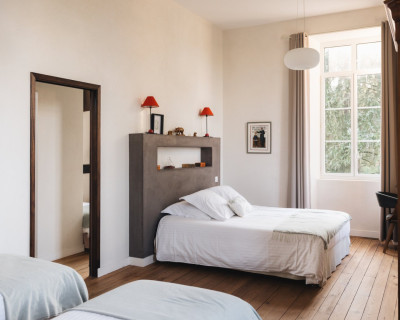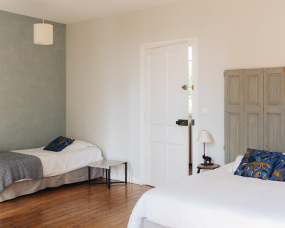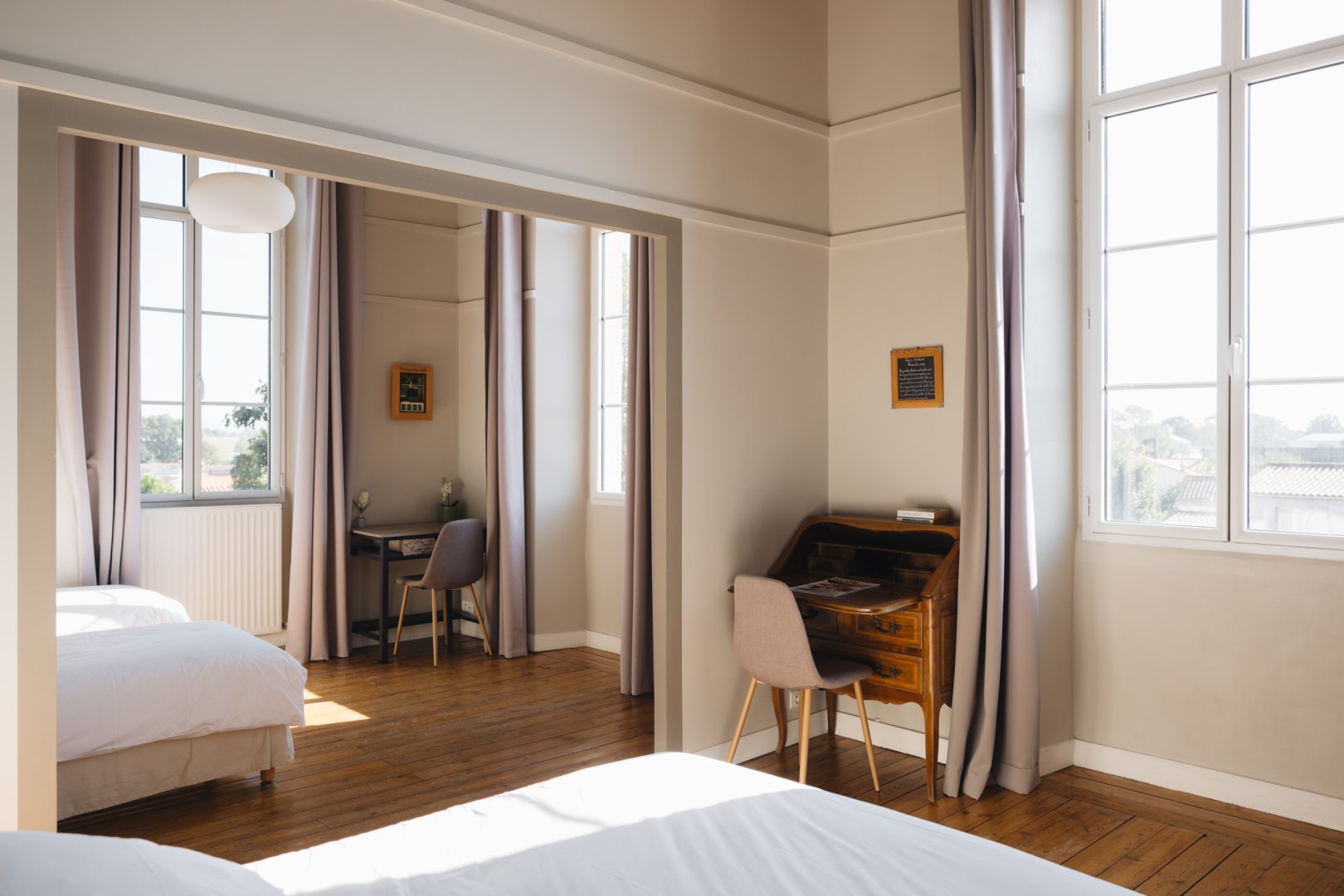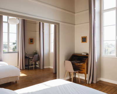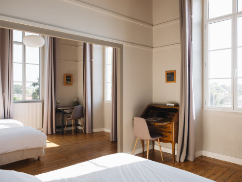 Située en façade et à l'étage de la maison, elle propose une vue sur la cour d'honneur et l'église du bourg.