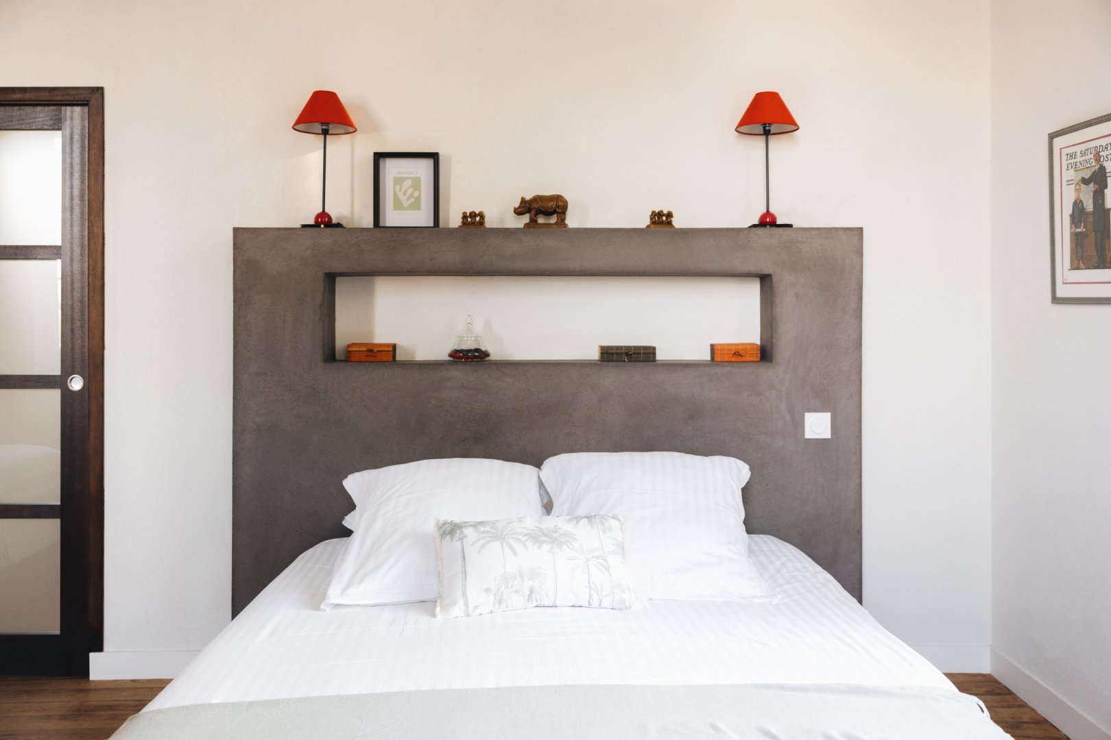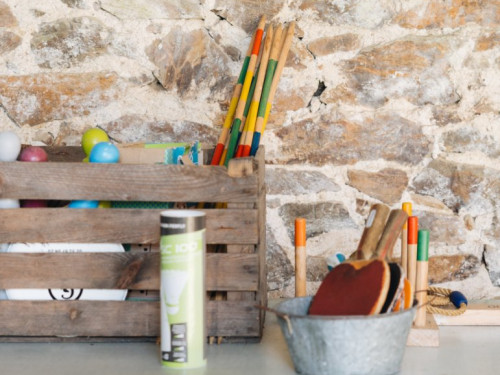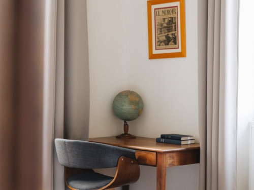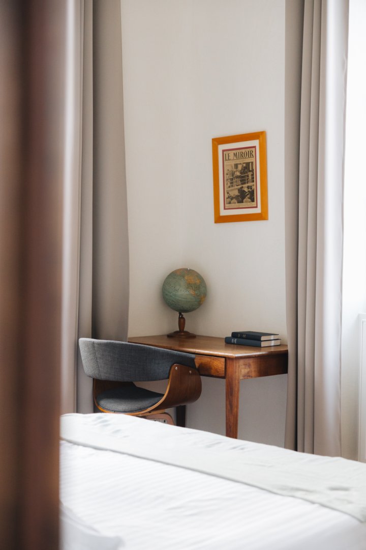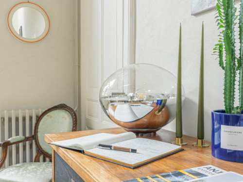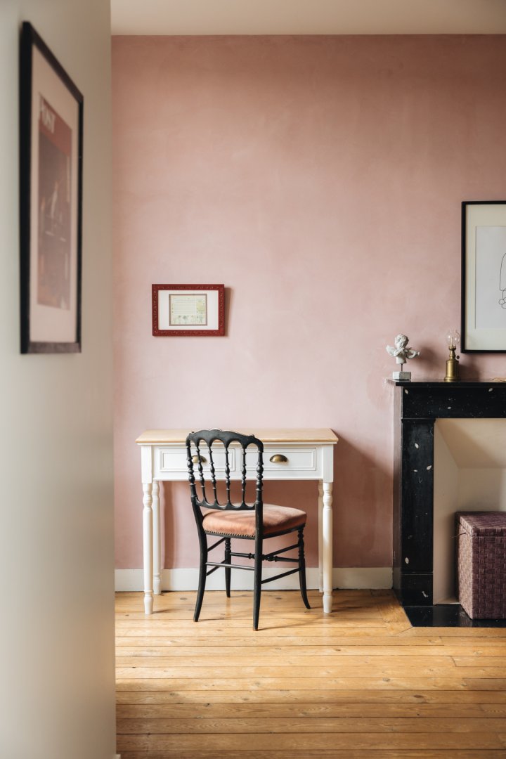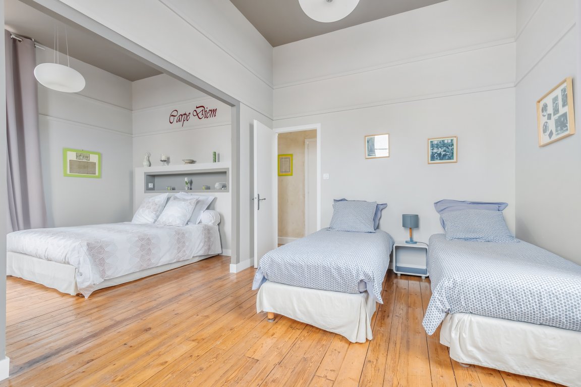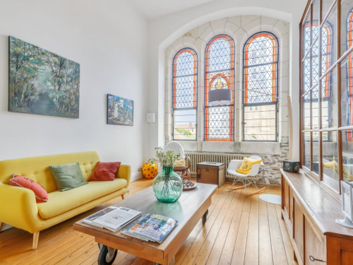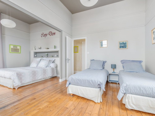 Située en façade et à l'étage de la maison, elle propose une vue sur la cour d'honneur et l'église du bourg.