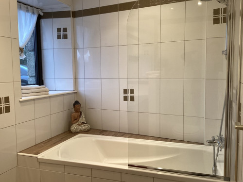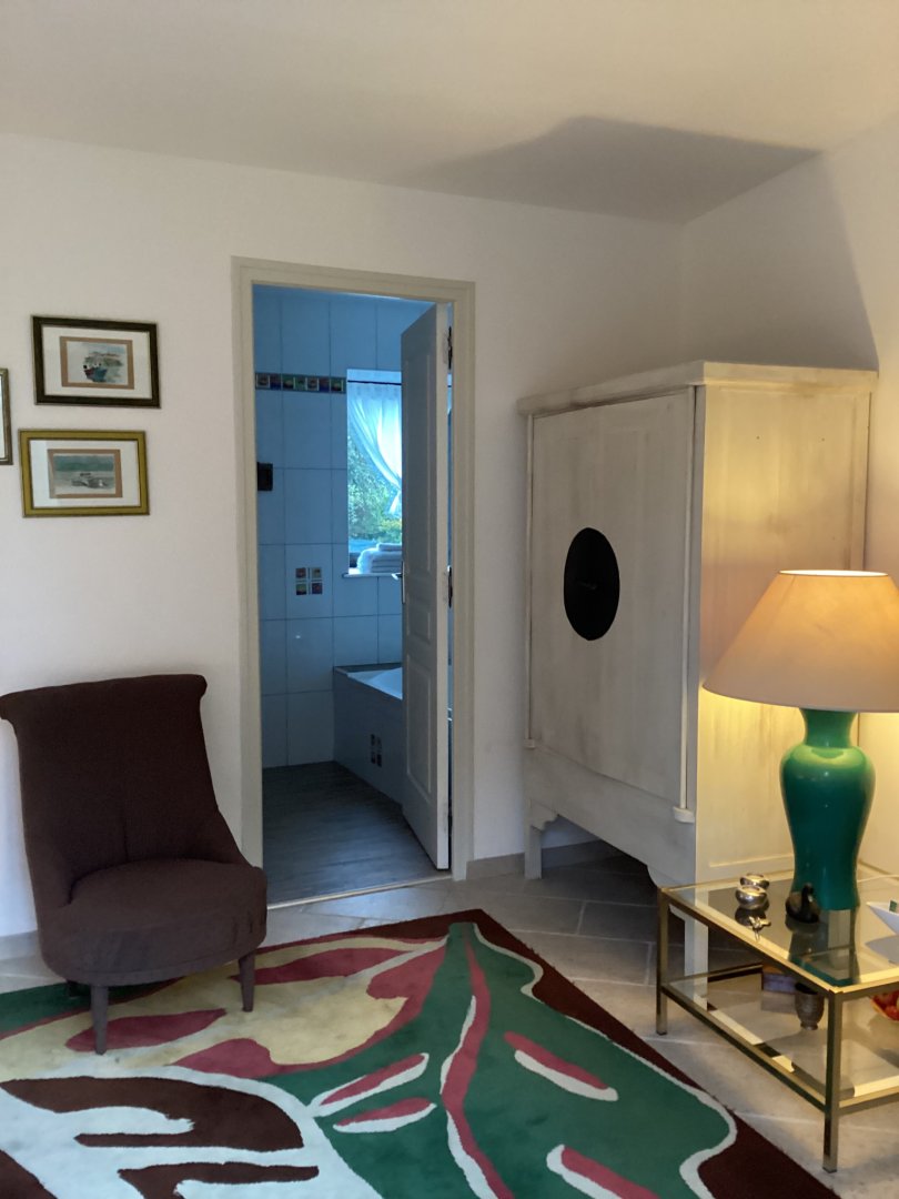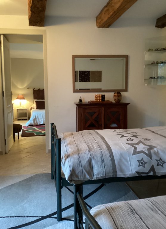 La suite est composée d’une salle de bain et de 2 chambres séparées, idéale pour une famille ou 2 couples qui se connaissent bien.