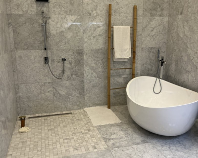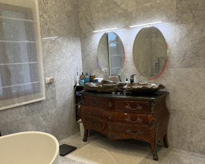 Loue suite parentale grand standing, climatisée, grand lit double, dressing, salle d’eau avec double vasque, grande douche à l’italienne en marbre de Carrara