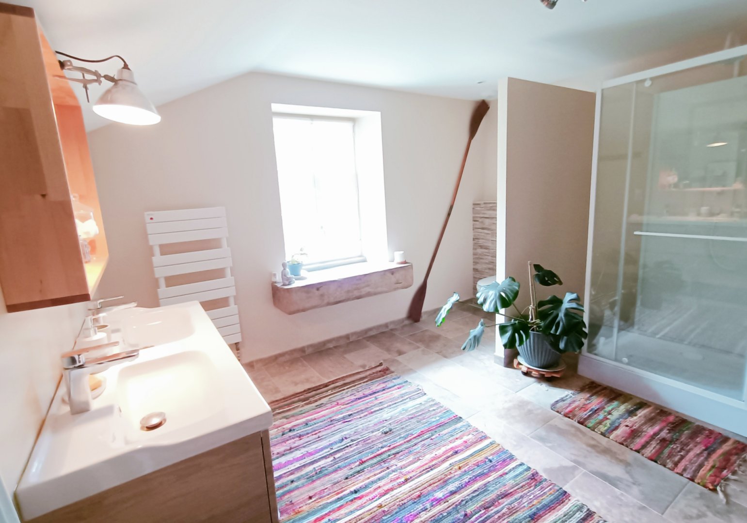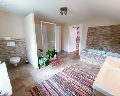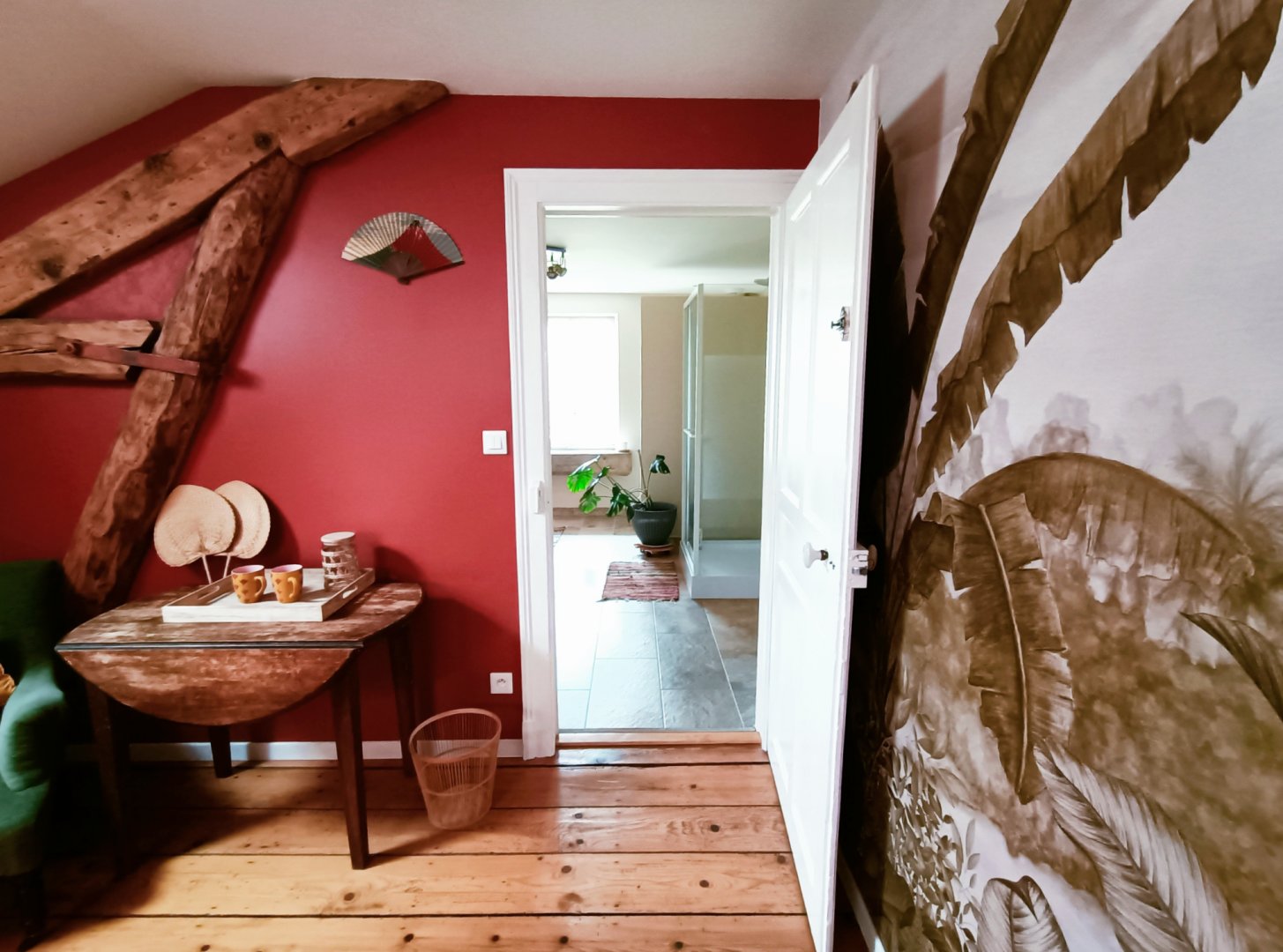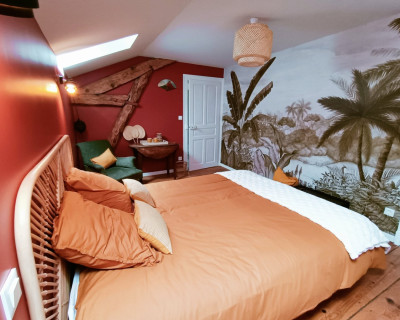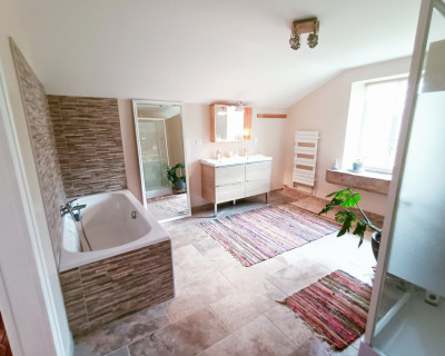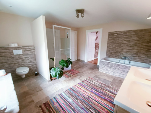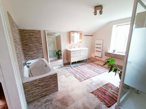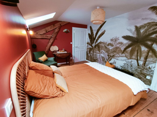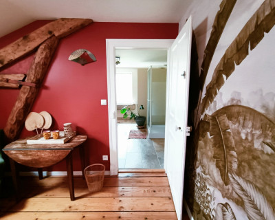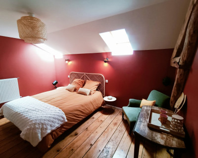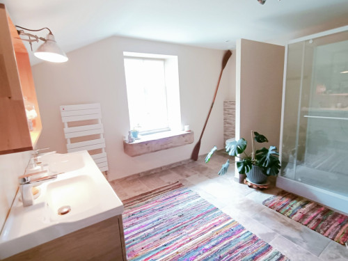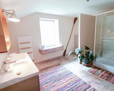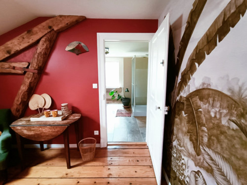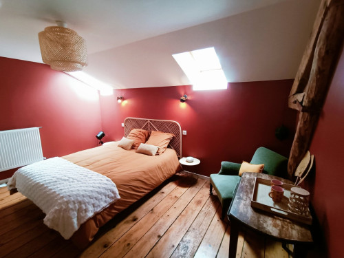 La chambre est au 2ième et dernier étage, et dispose d'une salle de bain attenante et indépendante.