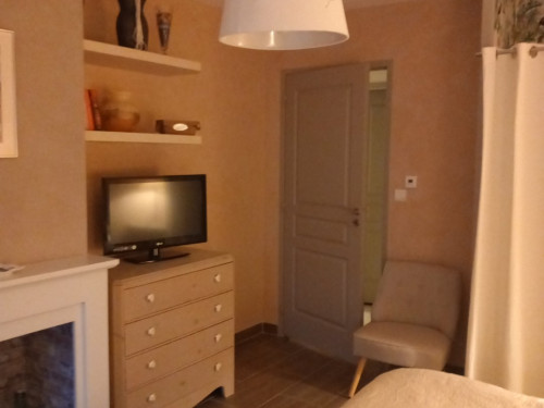 Spacieuse, lumineuse , confortable, équipée d'un grand lit, commode, penderie etc.. télévision WI-FI avec accès direct sur la terrasse.