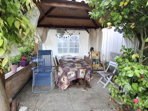 - un kiosque avec une table vous promettant de déjeuner à l’extérieur par beau temps