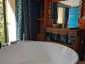 La grande chambre dispose d'un lit king size 180x200 cm. Elle dispose d'une salle de bain privative avec une grande baignoire îlot ronde et une douche ainsi que d'un toilette.