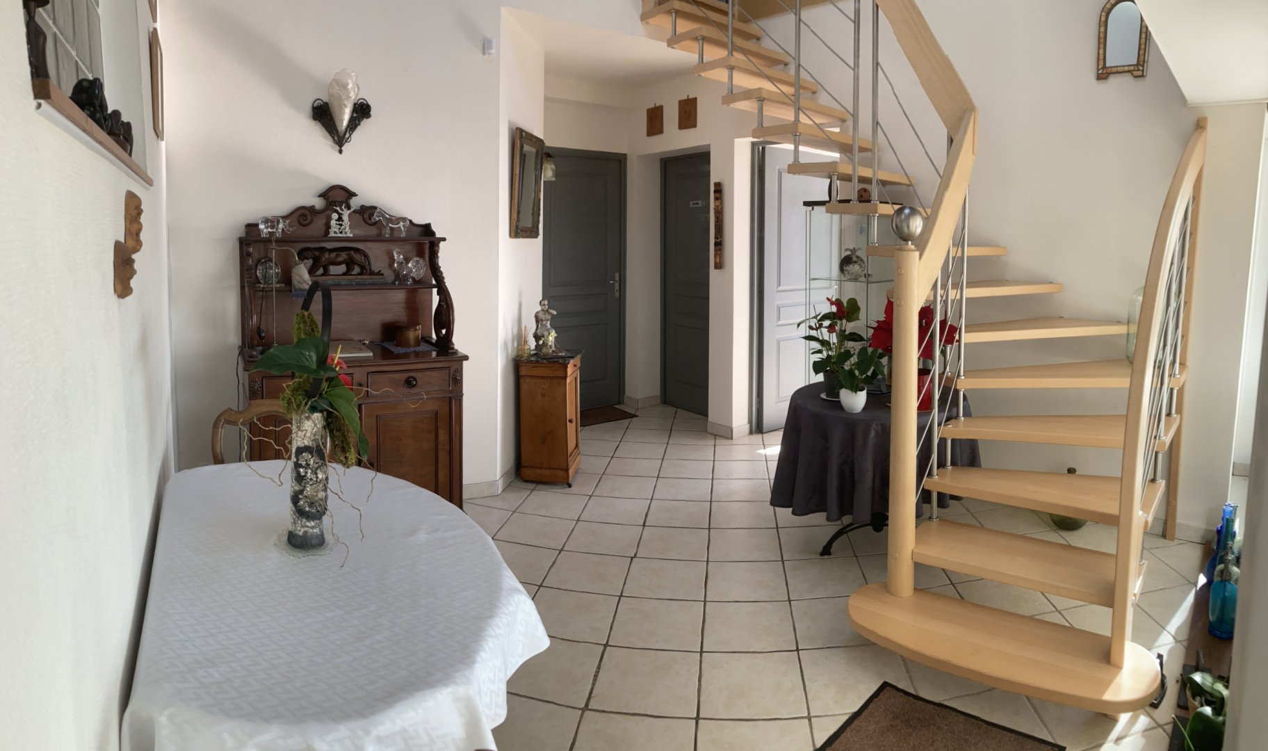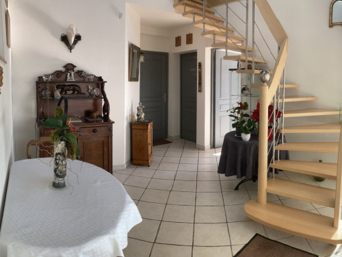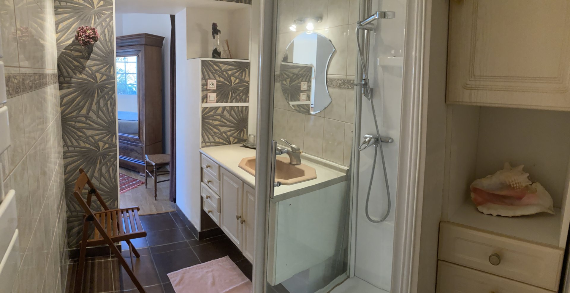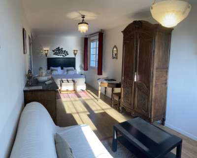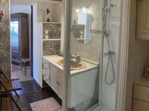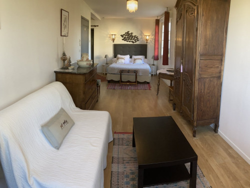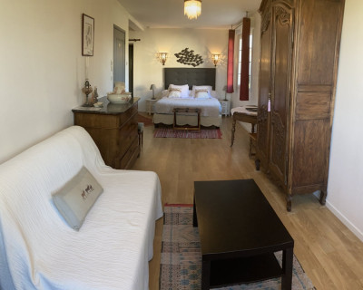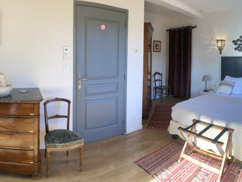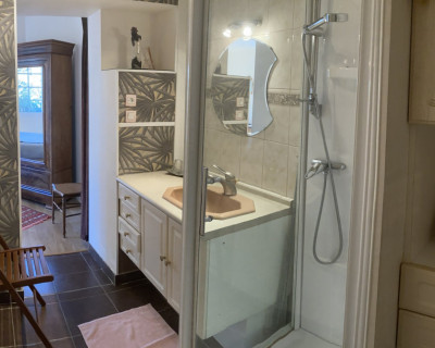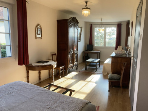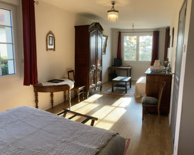 Dans un village fleuri et calme, nous vous proposons une chambre d'hôte confortable et spacieuse avec un lit 160x200, un lit canapé, un lit bébé, un bureau coin lecture, salle d'eau/WC.