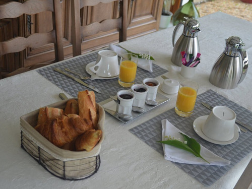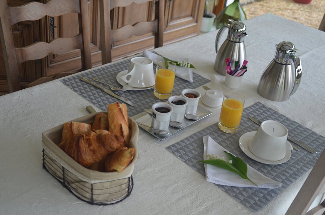 Petit déjeuner avec des produits de la maison et des artisans locaux bio.