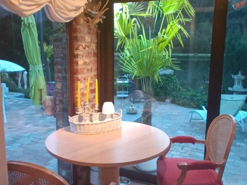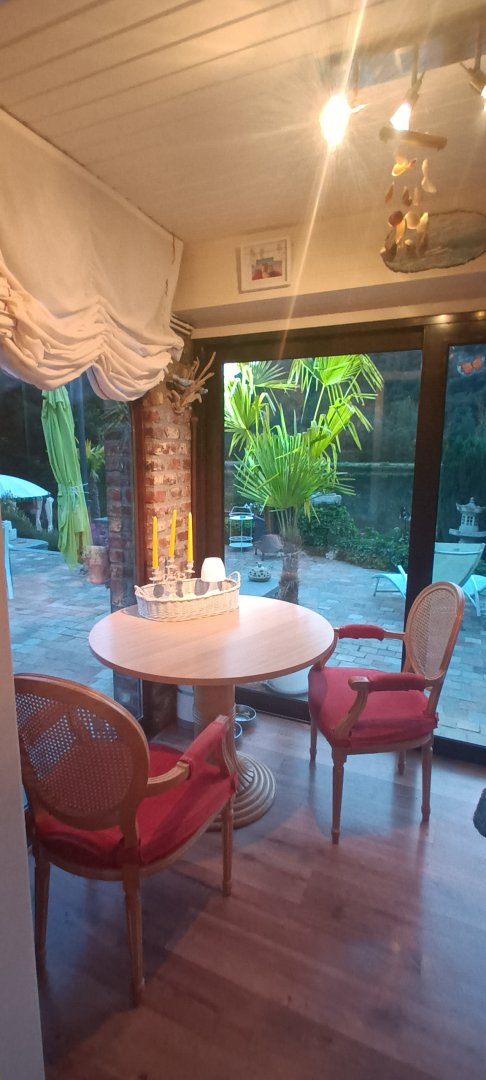 Vous avez accès à une cuisine (café, thé, frigo), véranda, coin de détente au jardin, terrasse face à l’île moniat.
