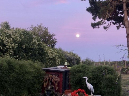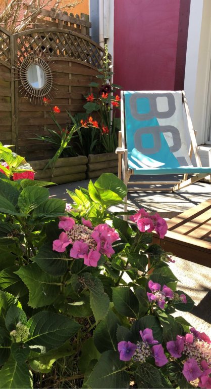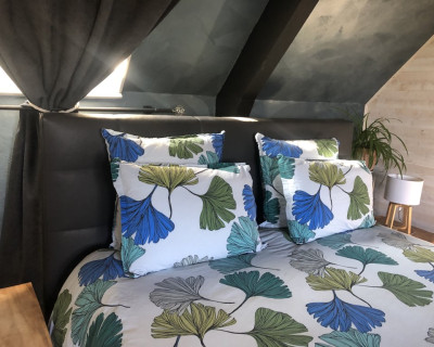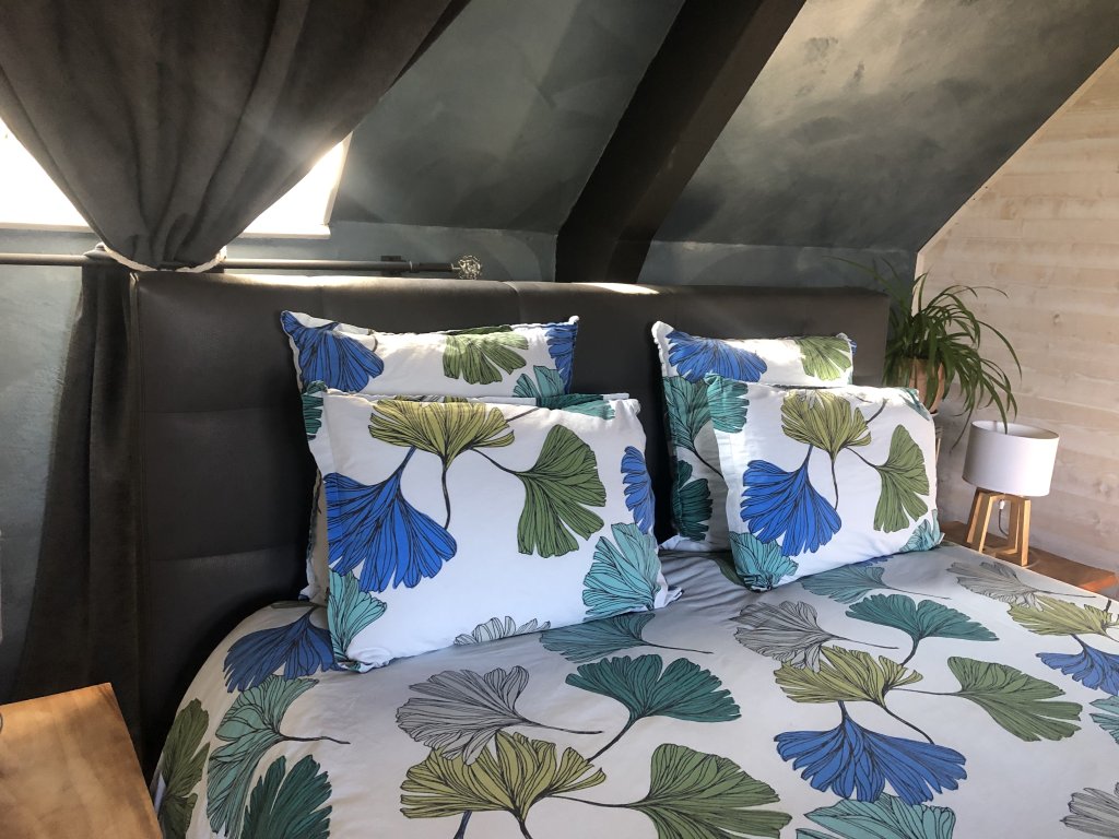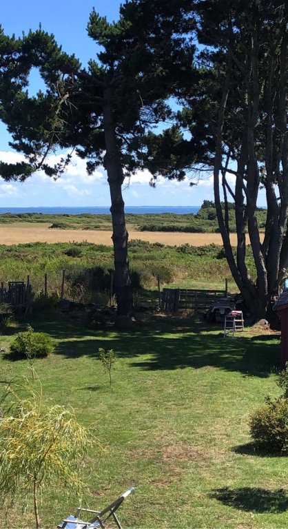 Une chambre d'environ 25 m², étage ouvert sur le reste de la maison mais entièrement dédié à nos hôtes. Vue jardin et mer; Un lit King size, placard avec cintres, lecture, television