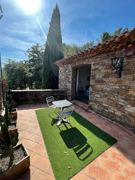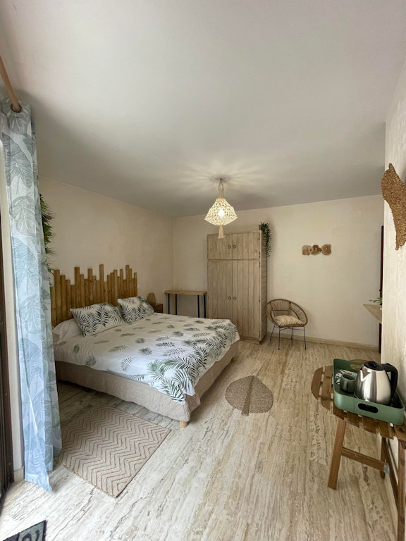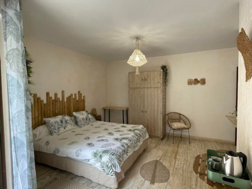 - une chambre pour 2 personnes avec salle de bain et WC privatifs, terrasse privative.