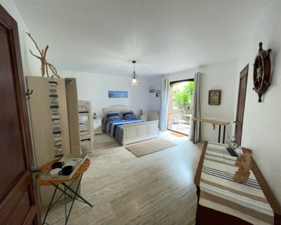 - une chambre indépendante à l 'étage avec salle de bain et WC privatifs, un solarium de 15 m² avec petite vue mer.