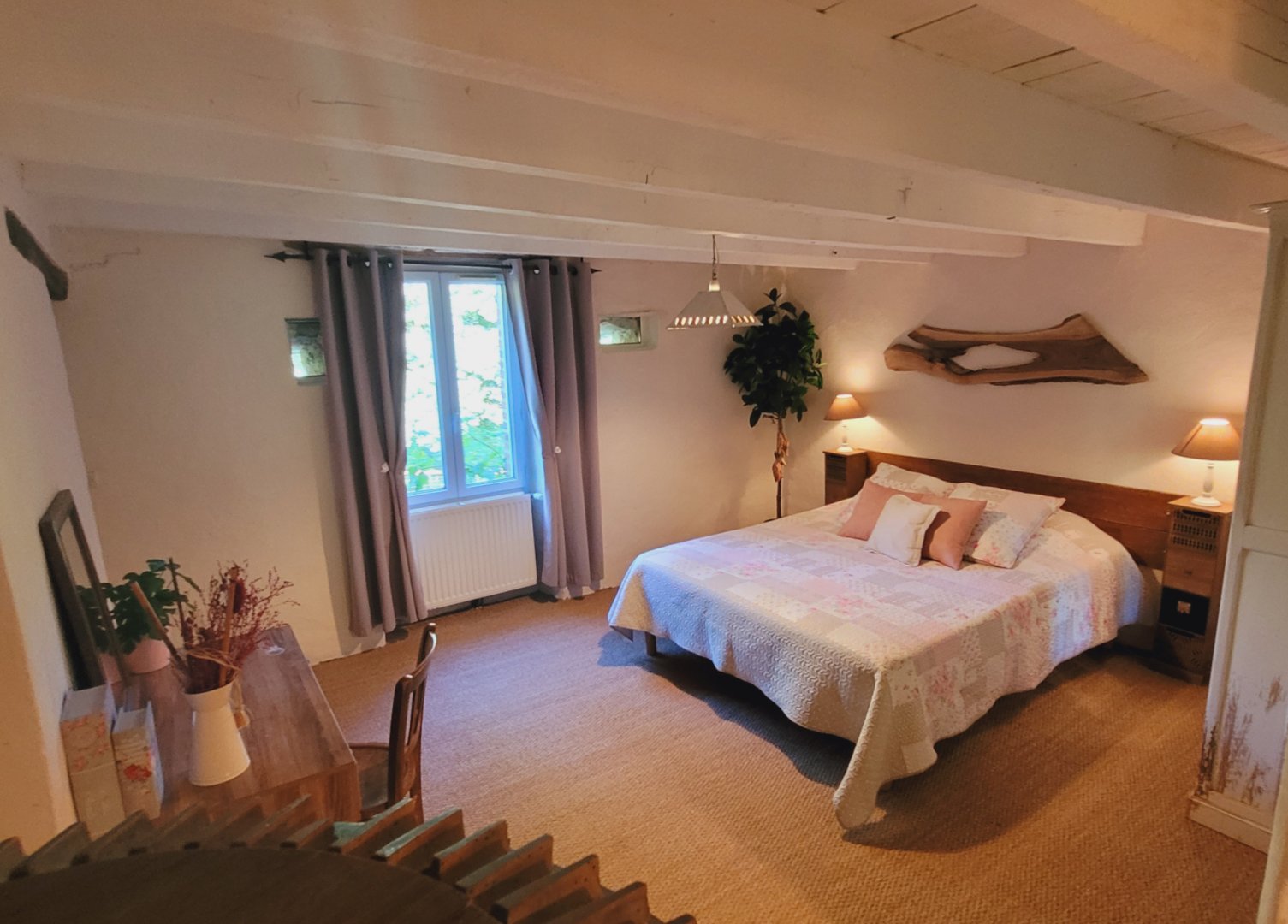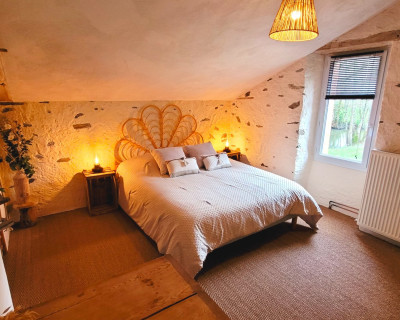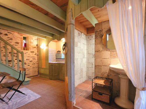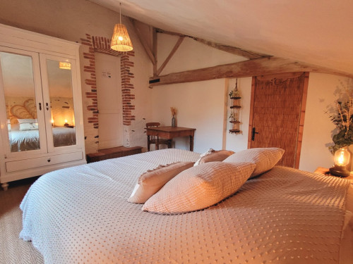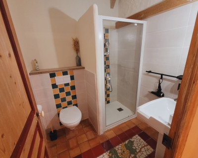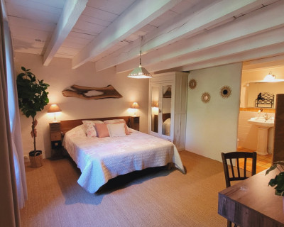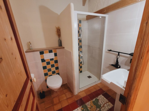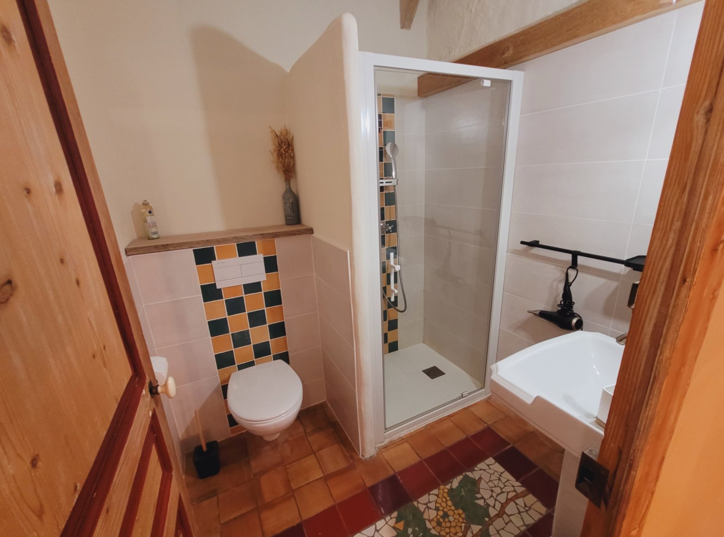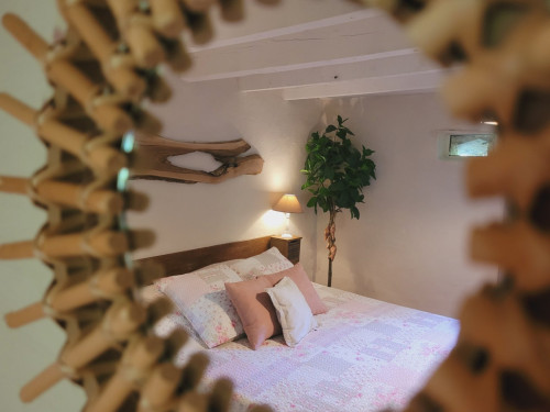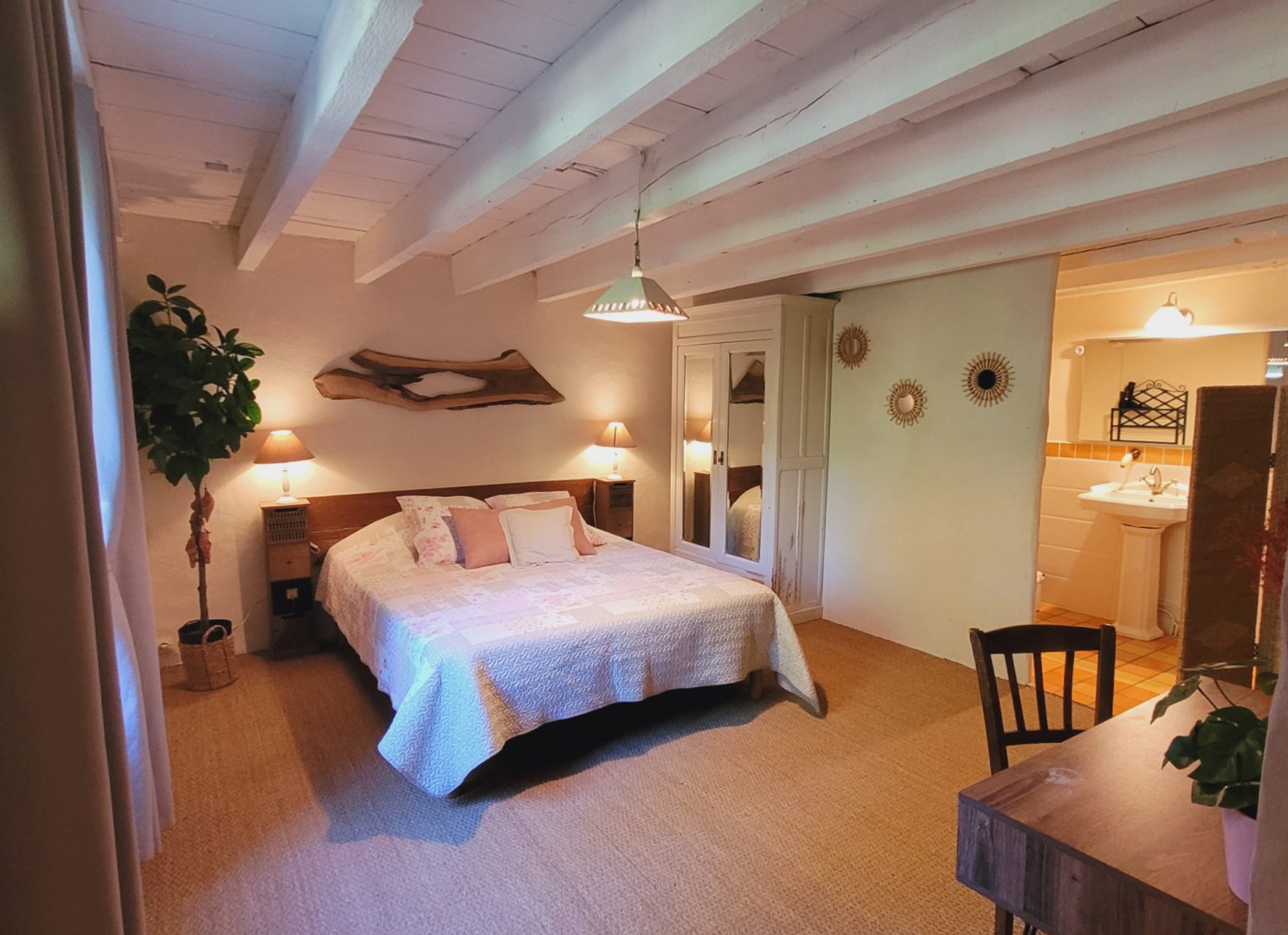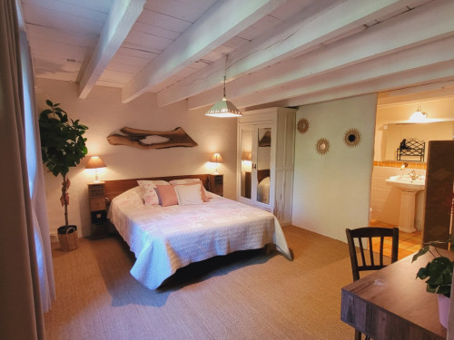 Elle dispose d'un lit de 160*200, d'une armoire et d'un bureau et d'une salle d'eau ouverte avec WC.