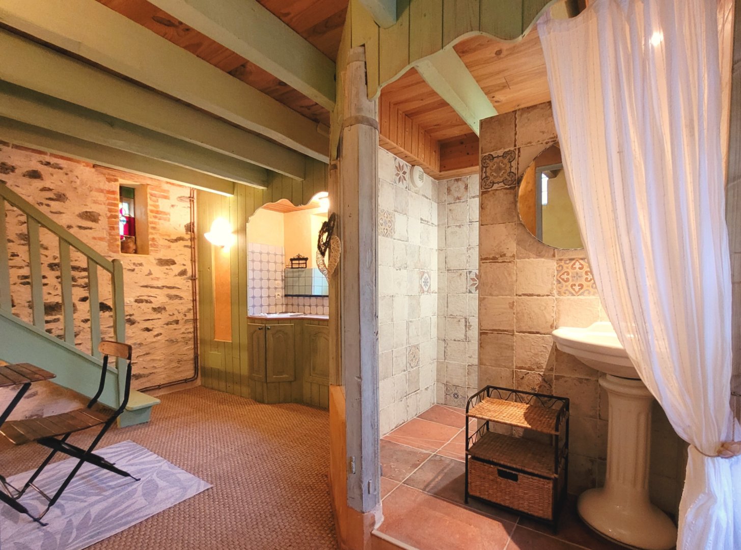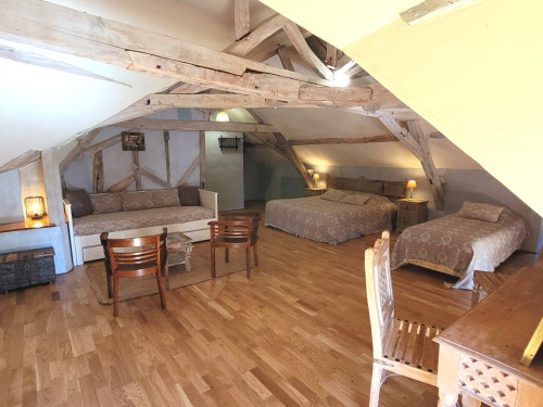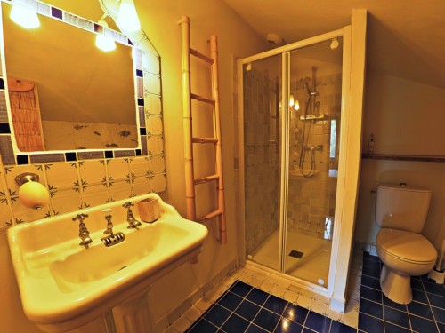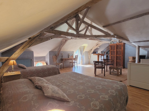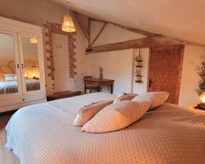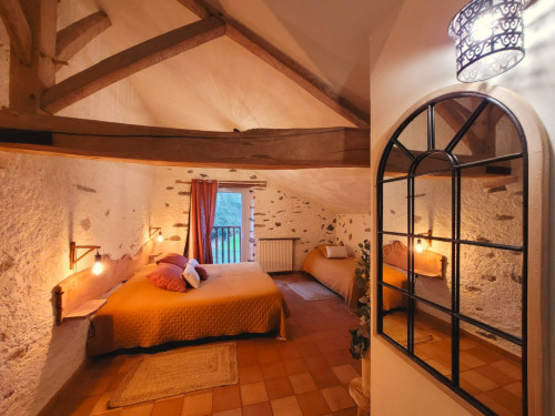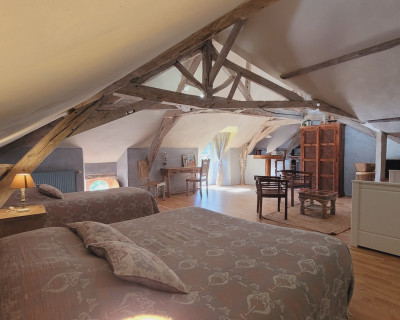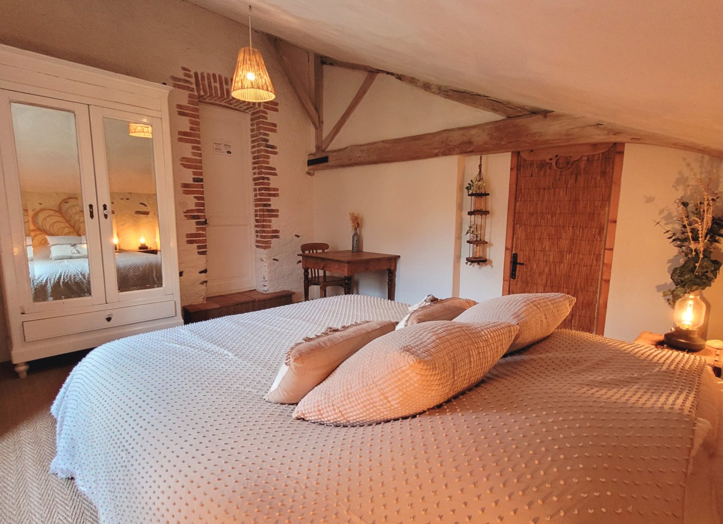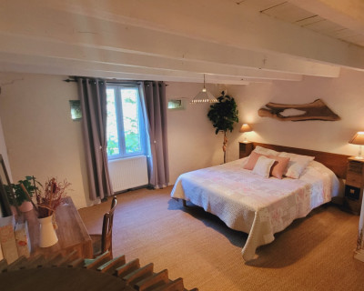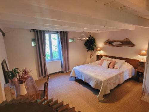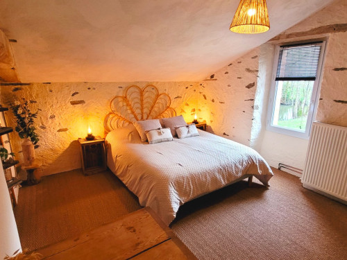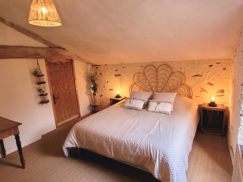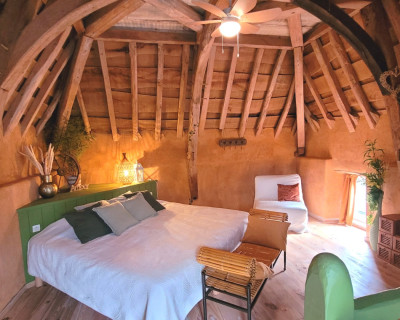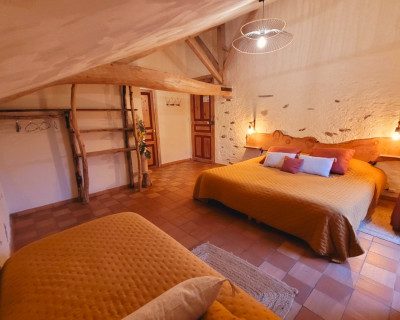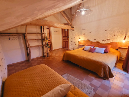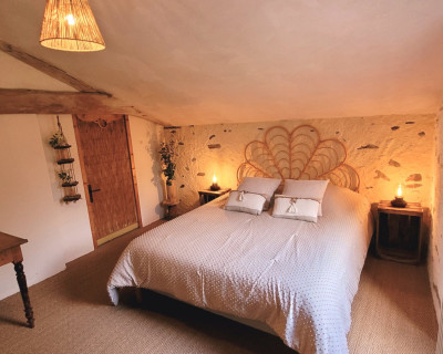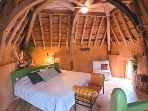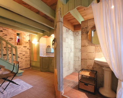 Elle dispose d'un lit de 160*200, d'une armoire et d'un bureau et d'une salle d'eau ouverte avec WC.