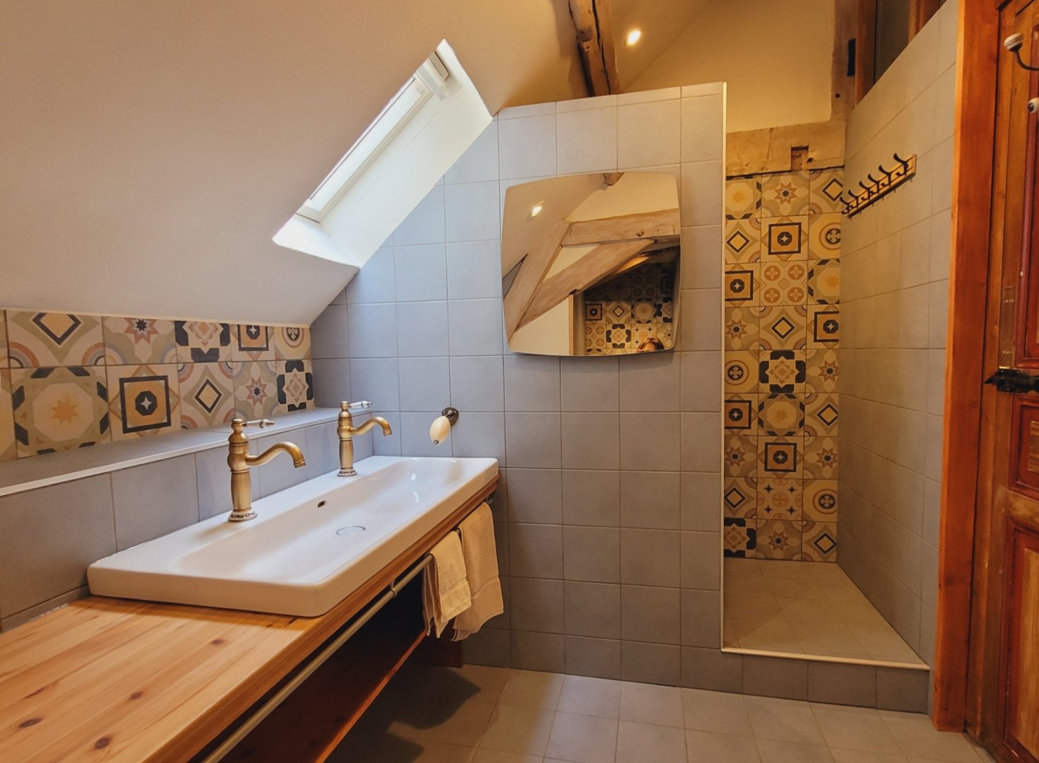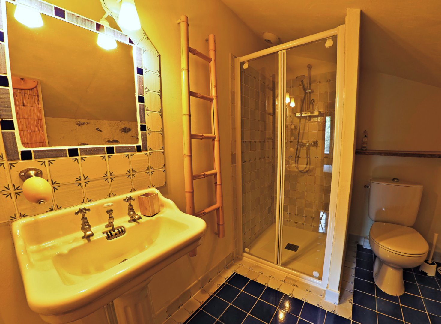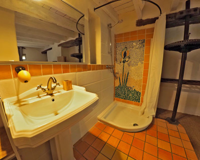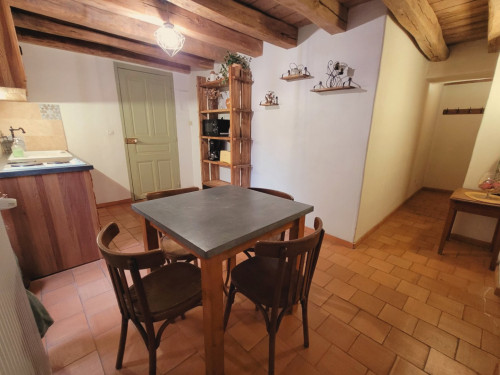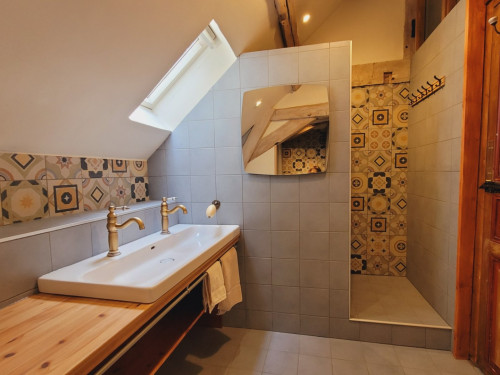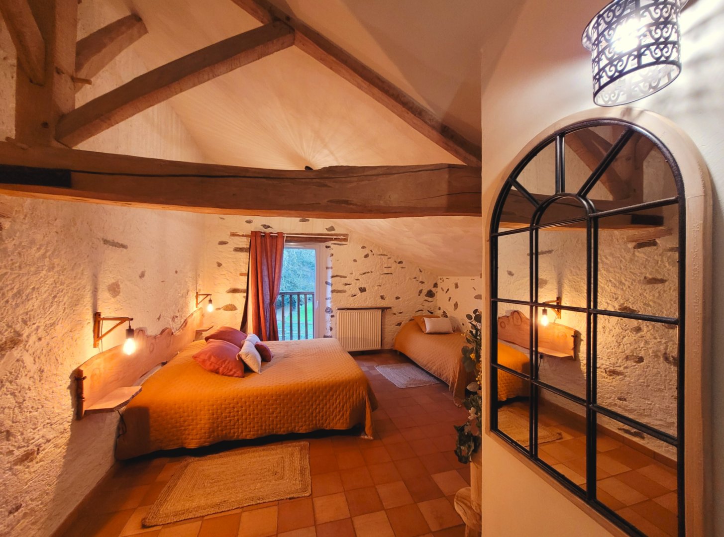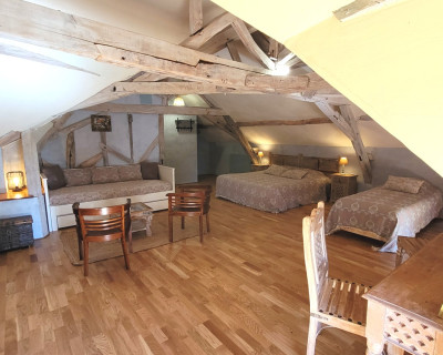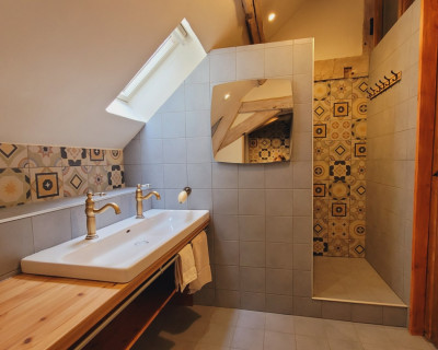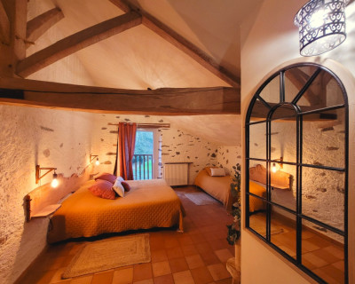 Elle dispose d'un lit de 160*200, d'une armoire et d'un bureau et d'une salle d'eau ouverte avec WC.