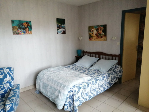 - 1 chambre double et une chambre simple avec salle de bain commune.