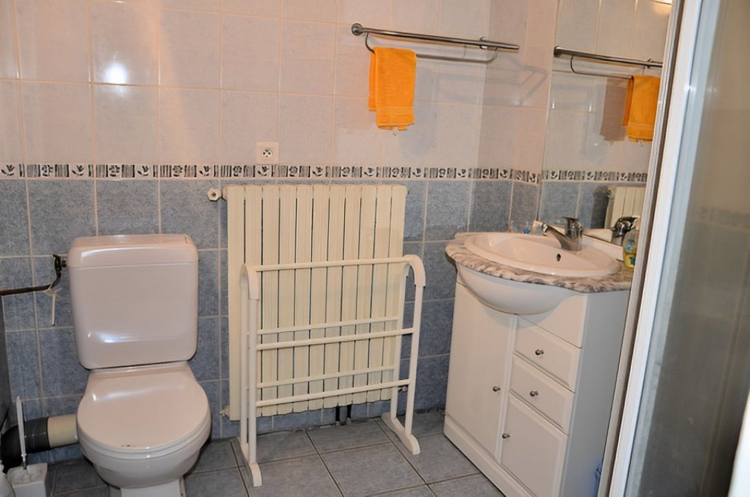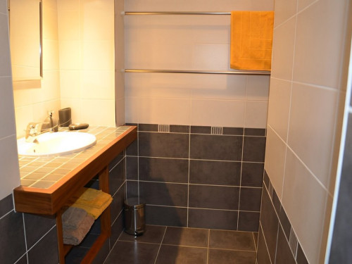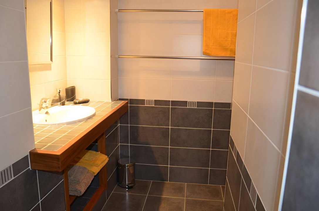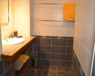 Salle d'eau avec DOUCHE À L'ITALIENNE, vasque et WC séparé.