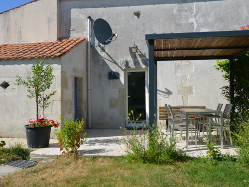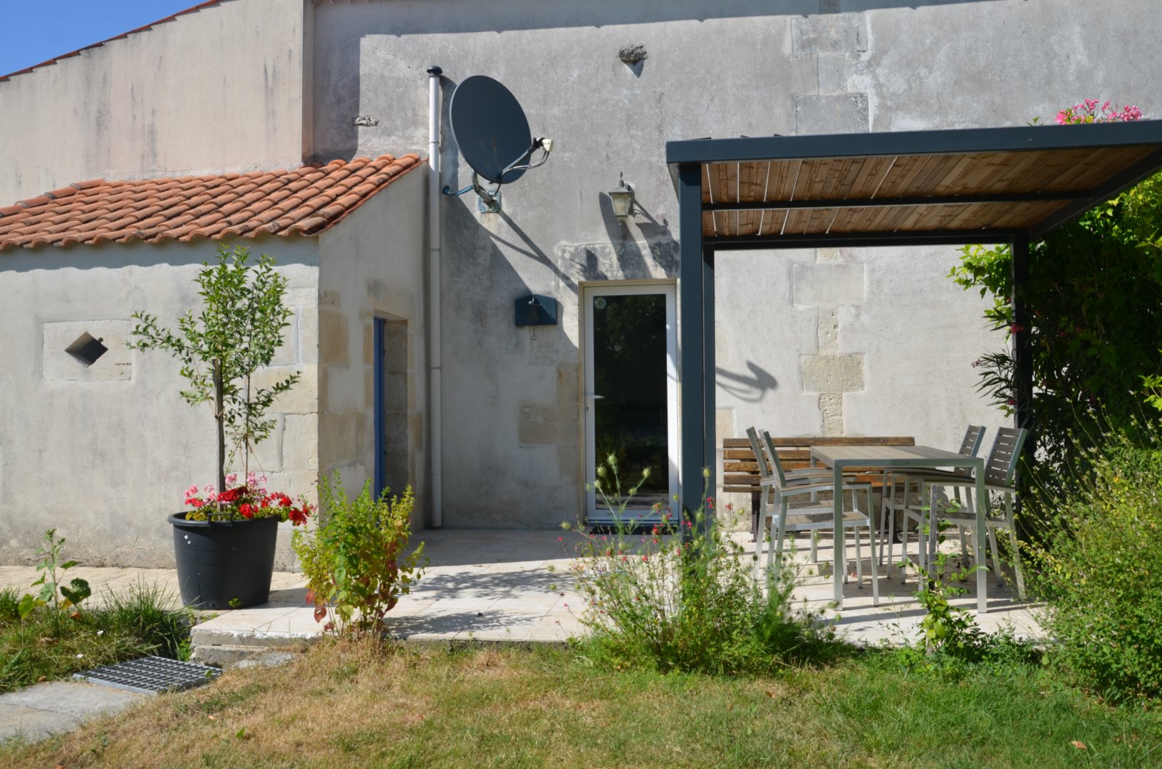 Terrasse attenante avec mobilier de jardin.