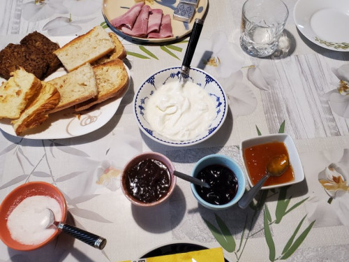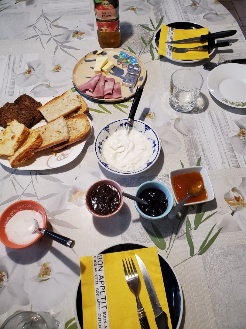 Petit déjeuner inclus, ainsi que les draps et linge de toilette. (confitures, salade de fruits maison,)