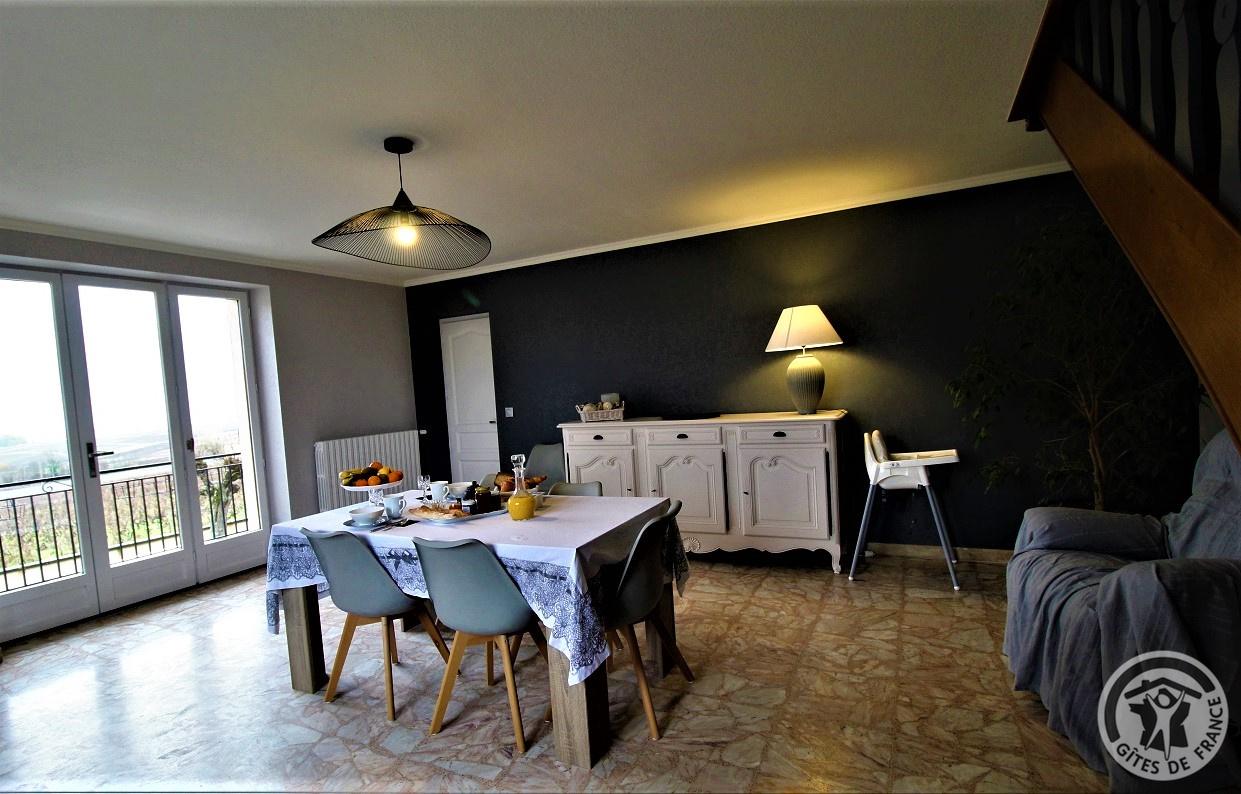 À 1 km du village de Fleurie connu pour son cru, la maison de type Beaujolais offre une vue exceptionnelle sur le vignoble et toute la Chaîne des Alpes (certains jours).