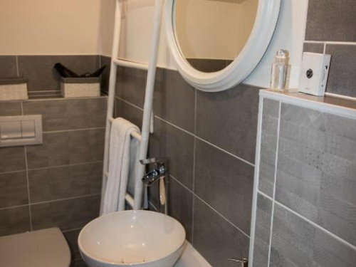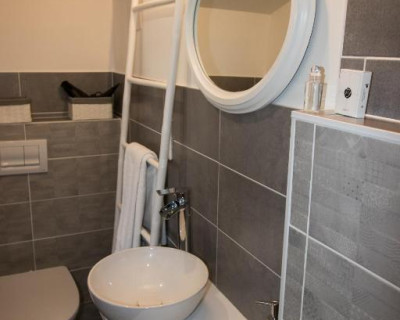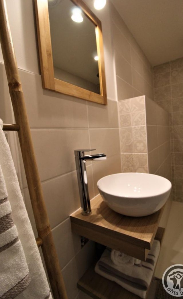 La Chambre "Herminette" dispose d'une entrée (avec fenêtre) donnant sur le wc séparé, la salle d'eau (douche, lavabo) et la chambre. Un lit en 1.40. Commode, cintres, miroir sur pied, plateau de courtoisie. Velux. Sol parquet.